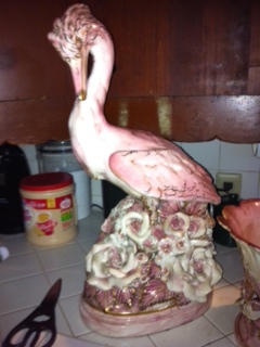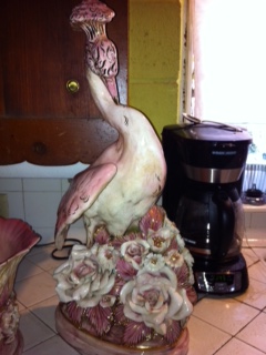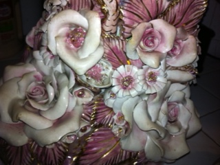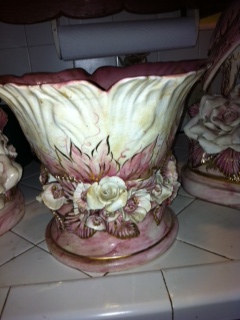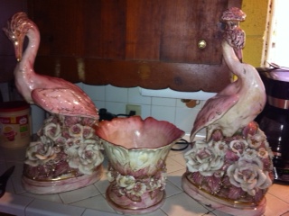 I would love to know what these are worth. If anyone has a clue. I have yet to find this type made by him. Two pink, gold, and white birds. No chips or cracks but glaze is crackling. Appears to be Capodimonte style. Cabbage bowl had two areas broken off that were pourly glued back on. Unknown where grandma bought them. Although I've wiped off the dust I haven't completely cleaned the grime off of them as I'm afraid to.