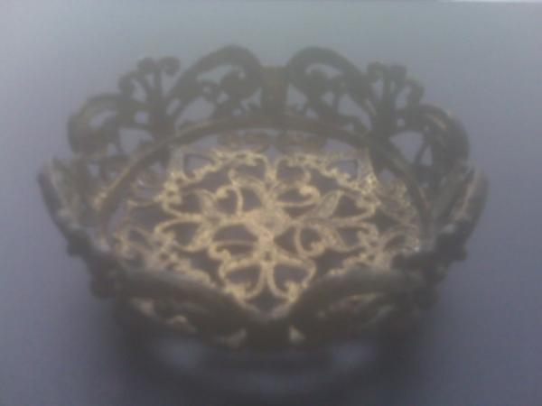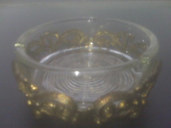 French Antique Lead Crystal Ashtray w/ Hand-sculptured 24Kt Gold Gilded Ornate Pewter Base