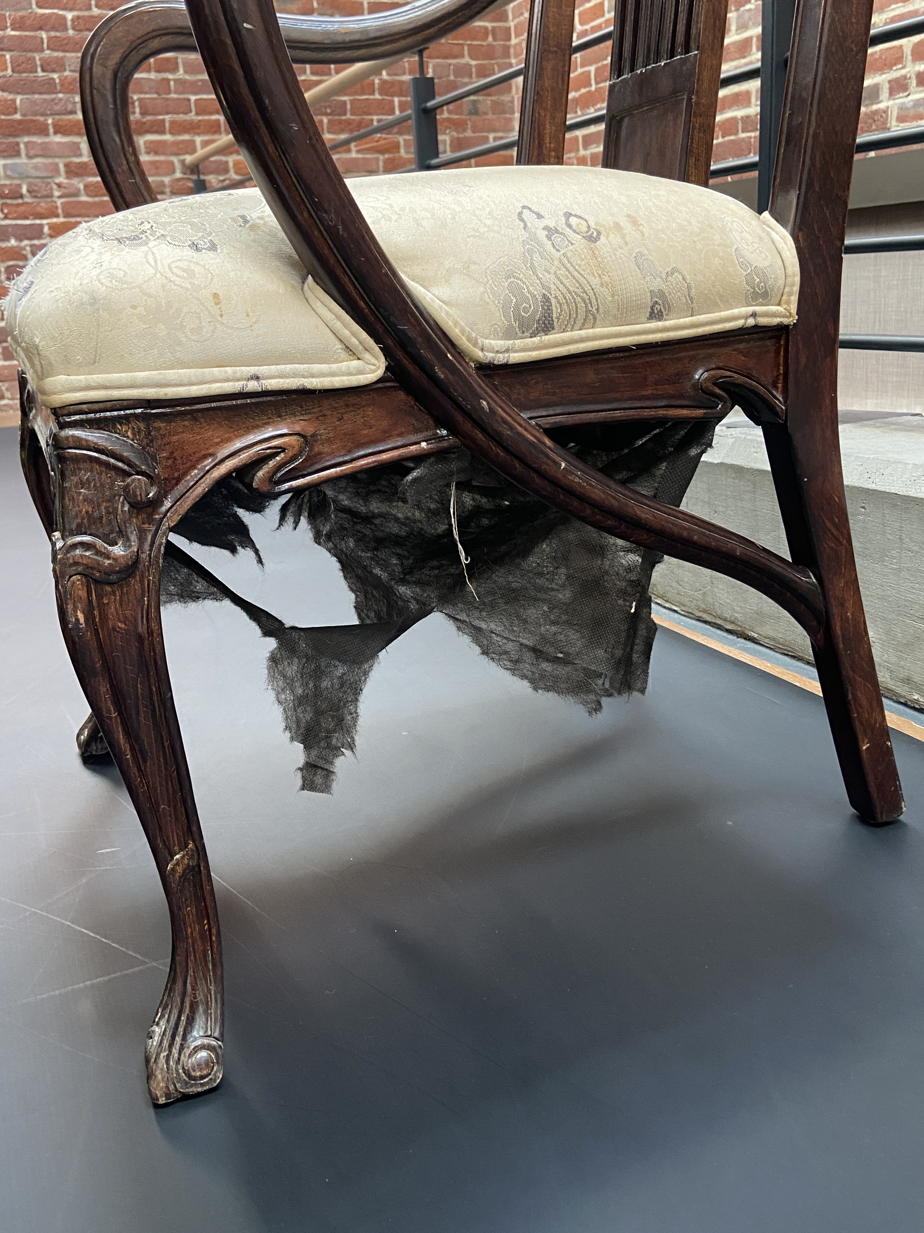 Documentation of the chair's history, such as previous ownership or exhibition records, would enhance its value. Researching auction records or contacting antique dealers specializing in Art Nouveau could provide additional insights.