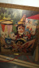 I have this painting too! I can tell you exactly who and what: It is by British painter Arthur Devis (not Davis) I know this as it is clearly marked on my vs with this name and title 'Good Companions'. From my research on the Internet I have gathered that it is also referred to as 'Master Simpson'. I am still yet to learn more about this as I am keen to know the value of this item. Did your mum learn more or have it valued since you posted your original comment. Some of the versions are quite valuable on E-Bay!