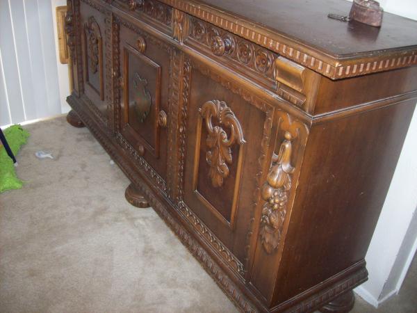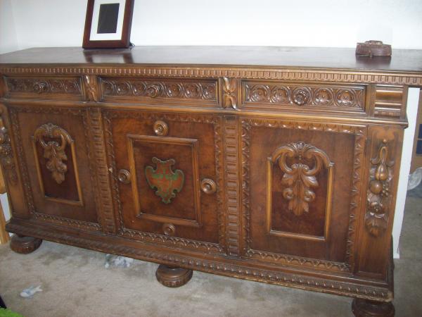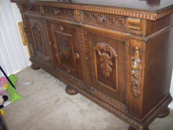 We have a piece of furniture we would like to know more about as far as what is worth and a little bit about it. We are told it is a buffet from 1930s but we don't know for sure. It weighs a few hundred pounds possibly even higher it's heavy that's all I know. My grandma's friend left it here when they moved and never came back for it. It has been many years and we are moving too and want to get a estimate appraisal for selling it. It has very nice designs on front about 7 foot long by 4 foot tall. It has the 3 doors and 3 drawers and includes a key to lock the doors.