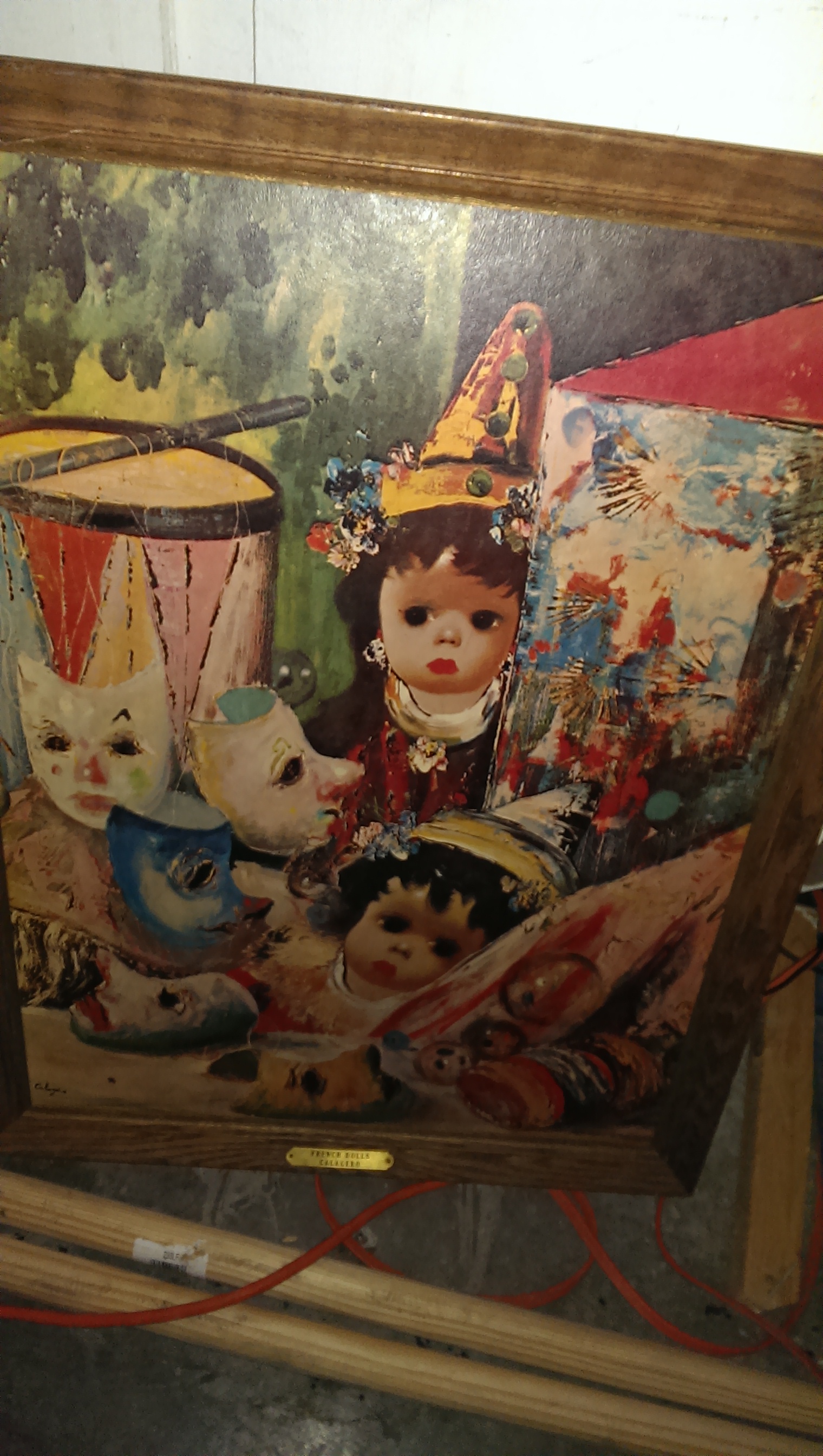 This is a painting called French dolls by calagero, it has a #5 French dolls calagero stamp in back, along with p316 v4537-141 and a description typed on a papered which is adhered to the back.