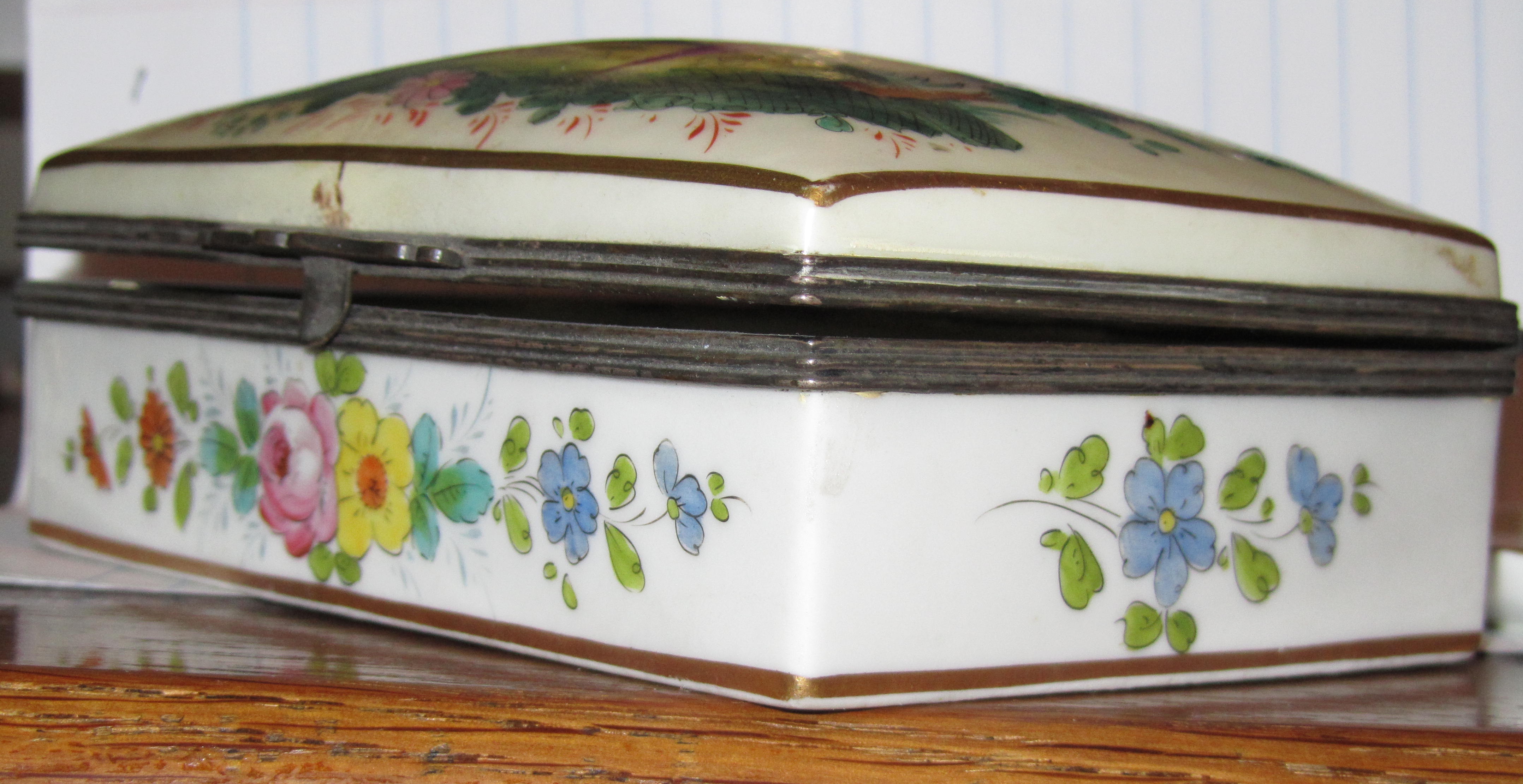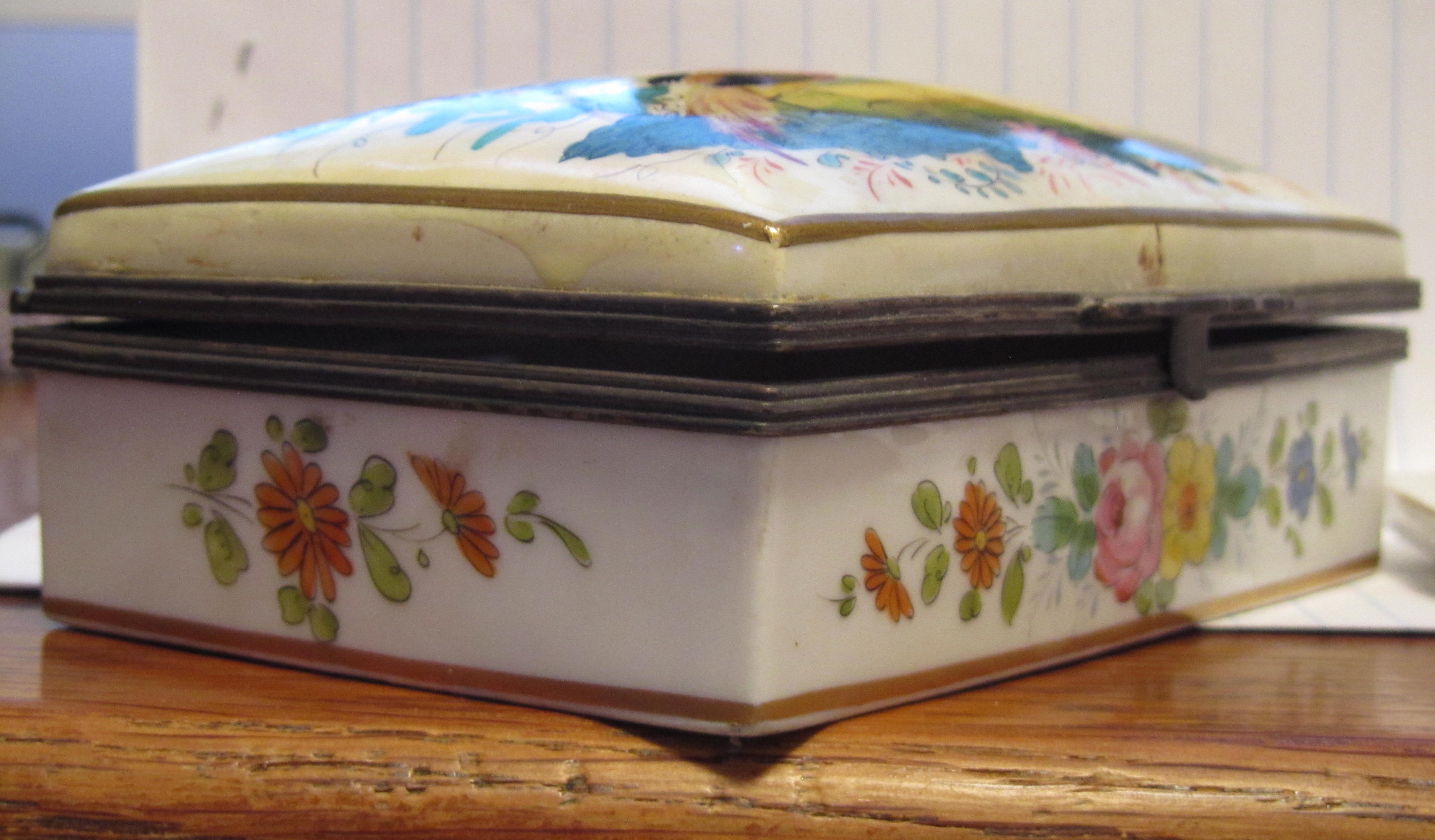 French porcelain cigarette box with lid and ashtray set