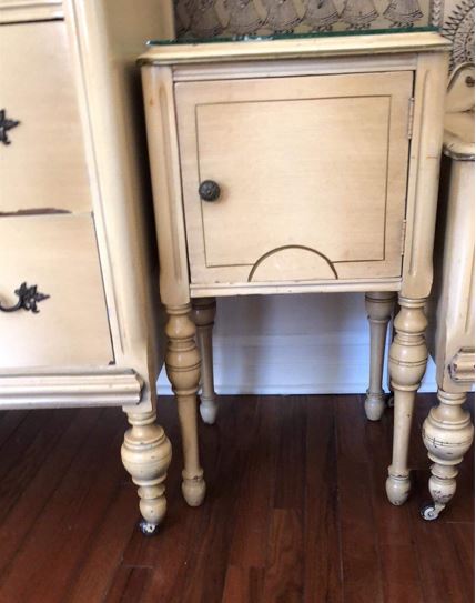 I was given these 3 pieces of furniture but i do not have much information on them. The woman who gave me the furniture is a registered nurse and she once cared for an elderly couple that gifted her the pieces. The three pieces of furniture came from their home. Both have now passed therefore I am unable to obtain any information. I'm interested in knowing the history of these pieces, the time period especially. All 3 pieces are lighter than expected in weight, the drawers include dovetail joints and also two out of the three pieces have casters. Each piece also includes a glass top as you'll notice in some of the pictures. There are absolutely no labels, stamps, carvings, handwriting, etc. on any of the pieces.