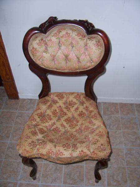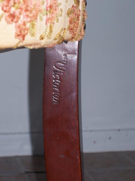 This chair is known as a french Victorian from the early 1900's. It is made from Walnut wood. It has a floral pattern that is embroidered into the chair.
