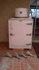 This Fridge works great and its a Frigidaire made by General Motors in the 1950s. Very few dings or scratches. It has 2 shelves and a frigidaire hydrator and a freezer, Stands 5' tall and 3' wide. It has a chrome strip about 10" from the top of the door and still has the chrome toe kick.