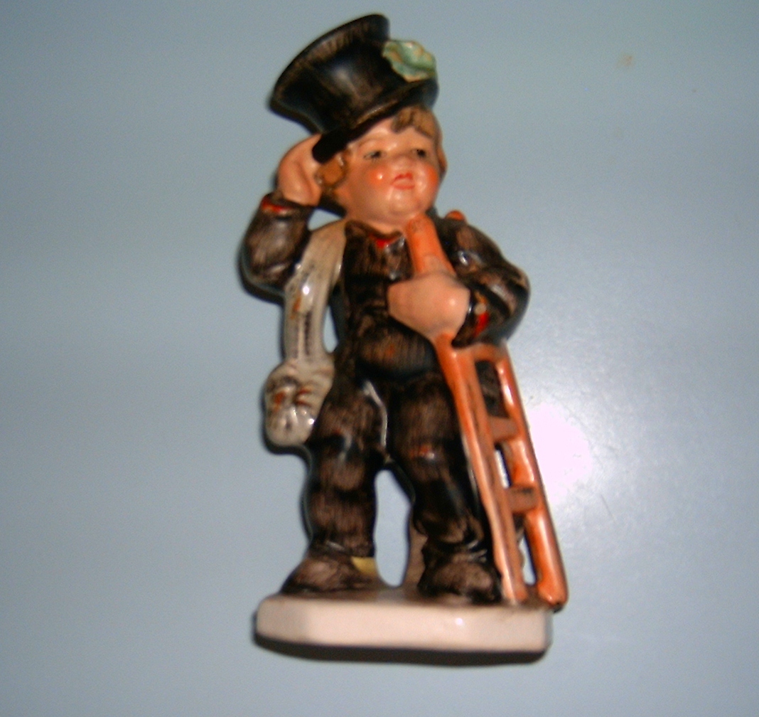 I have a 5 1/2" figure of a little boy that looks like a Hummel. But not marked Hummel. He has a black top hat on and a ladder under his left arm I think its a rope over and around his right arm which is raised holding his hat. Its marked in green on the bottom Friedel Bavaria Made in Western Germany Hand Painted. No marks that I can see or signatures.