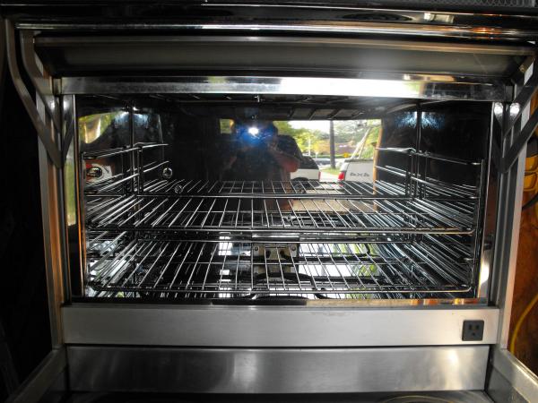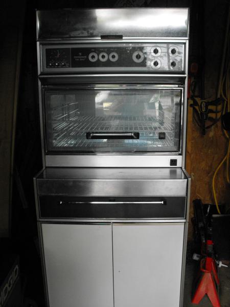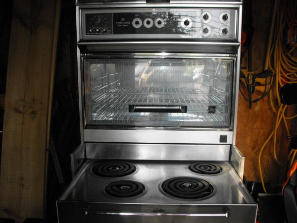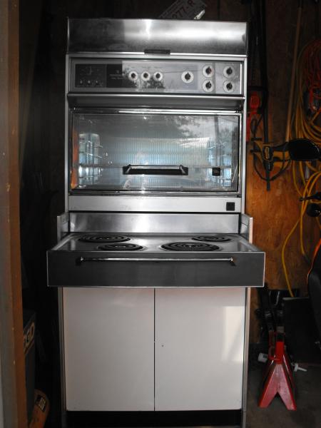 Frigidaire Flair Single Oven Range...Slide out burners all work...slide up oven door...storage unit on bottom....Nutone pull out exhuast fan on top...white and stainless steal