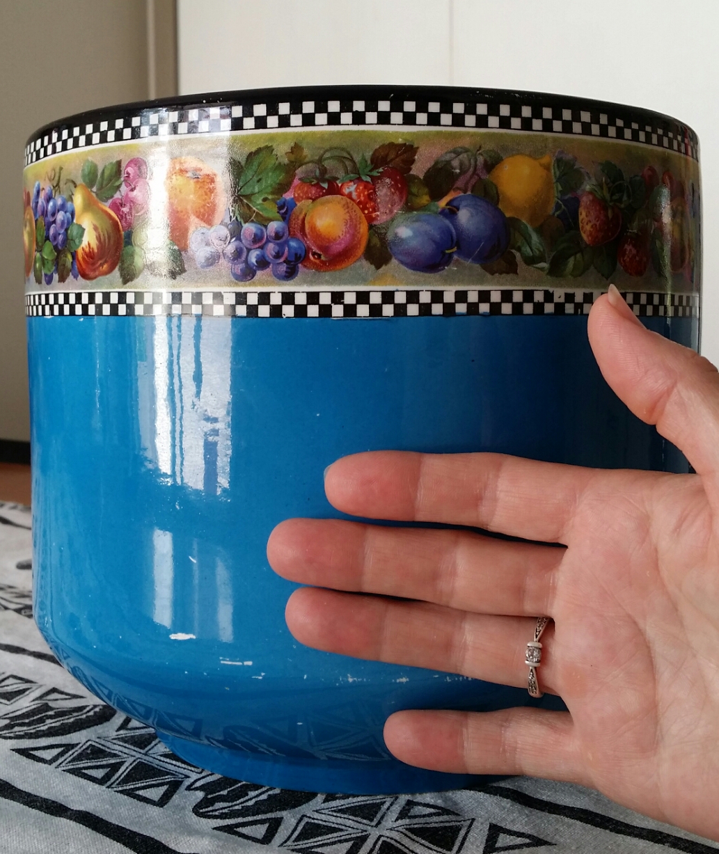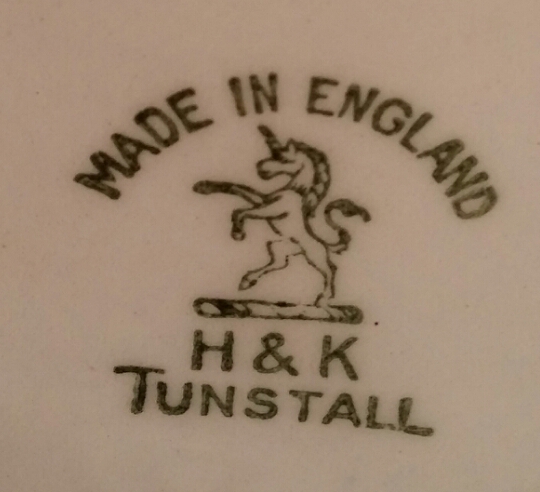 Good day I have a pot, fruit bowl not sure, that belonged to my great grand mother I was told. It has the marking H&K Tunstall at the bottom. It is blue with a trimming at the top of about 4cm. The trimming is fruit and the top and bottom of the trim is black and white checked. Not sure if we can send a photo. I was wondering if anyone could give me the value please.