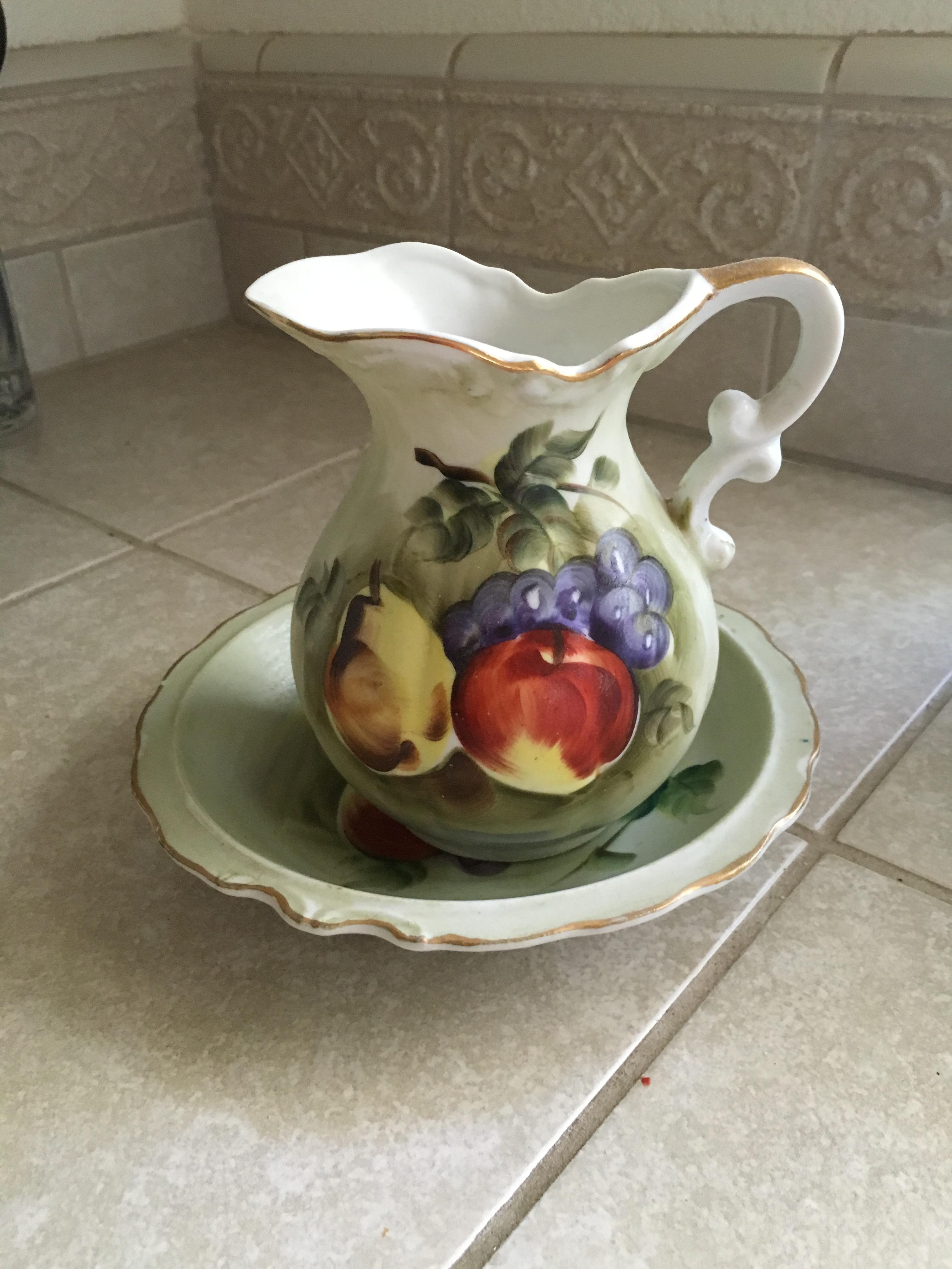 This is a fruit pitcher and plate , it originally belonged to my grandmother who passed away in 1989.