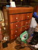 It has five drawers, 2 on each side and one in the middle. It has all the original handles and is in good shape structurally. It could be refinished but it has not been repainted at this point.