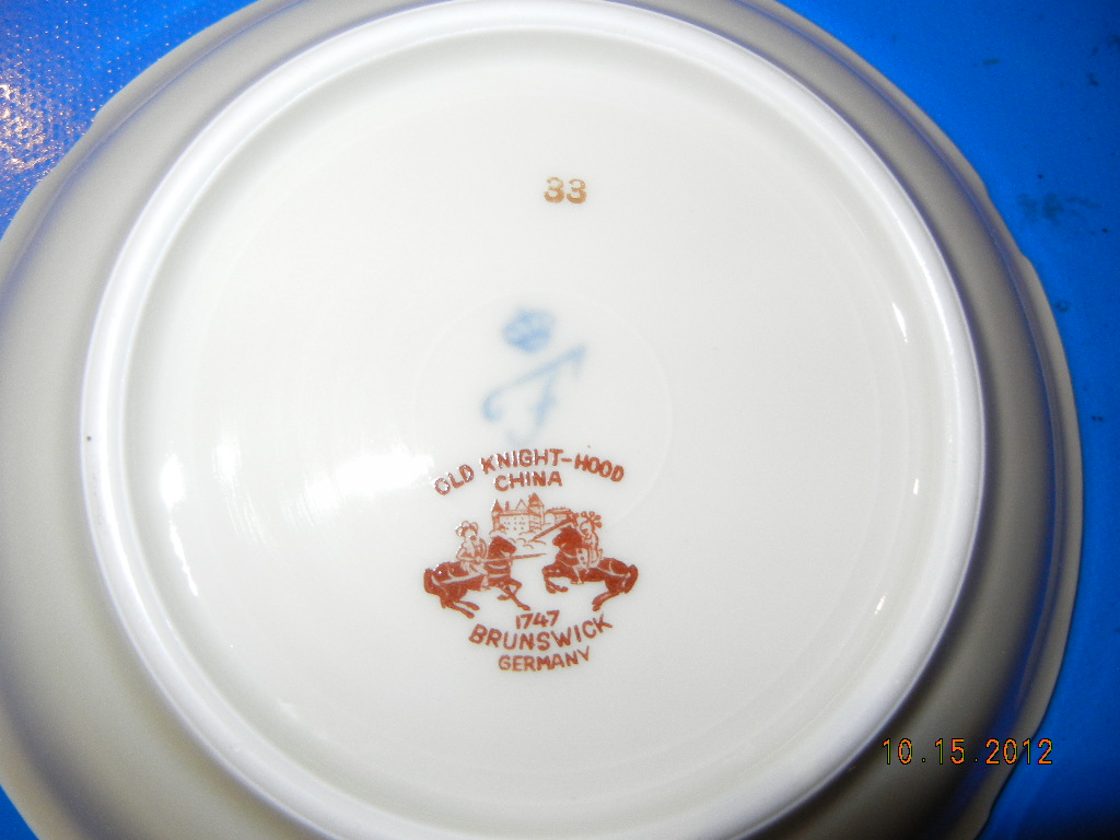 I believe I have identified this China pattern as Furstenberg Old knighthood and would like to know if it is worth the effort to try to sell. I have 10 - 5 pc pl settings (dinner, salad, bread and butte, cup and saucer. Note, all plates are round - I have seen on photo on the internet with a square salad plate(?), but mine is round), 10 2-handled cream soup bowls with saucers, 12 fruit bowls, creamer & sugar, 1 large platter, 1 small platter, plus miscellaneous spare pieces - 6 dinner plates, 2 soup saucers.