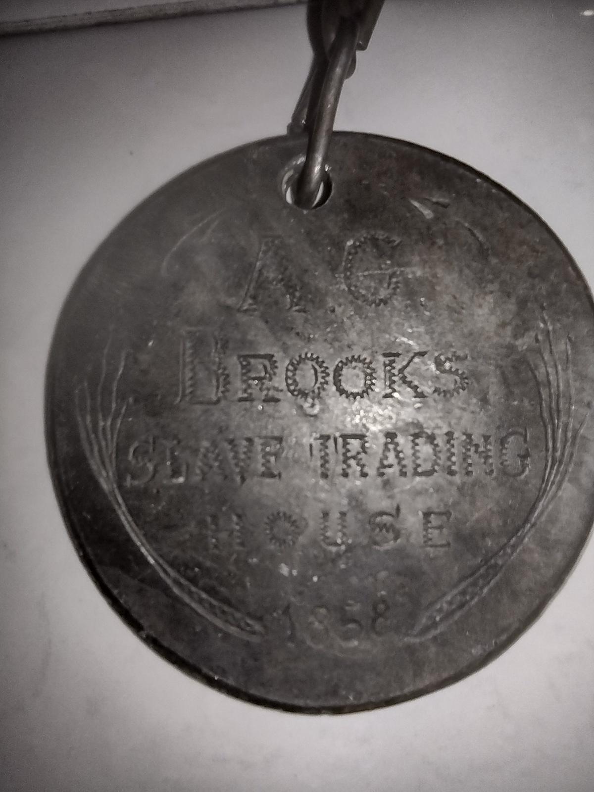 A.G Brooks Slave Trading House 1858 is what the key and medallion read. Very good condition.