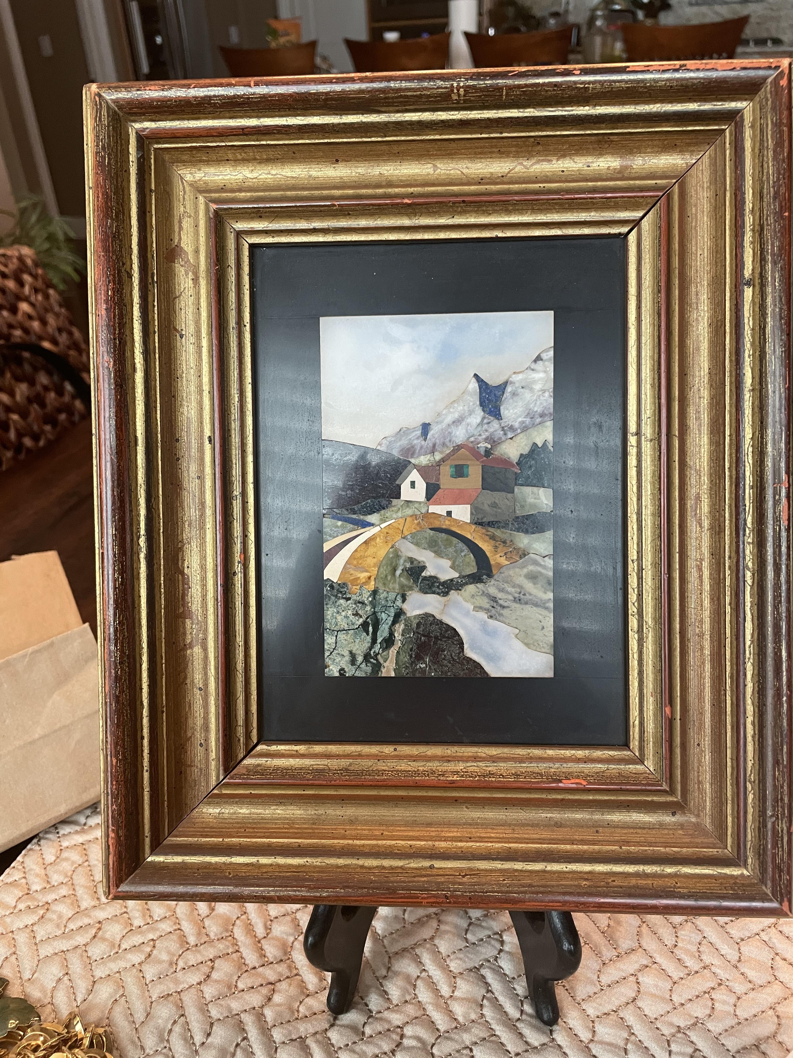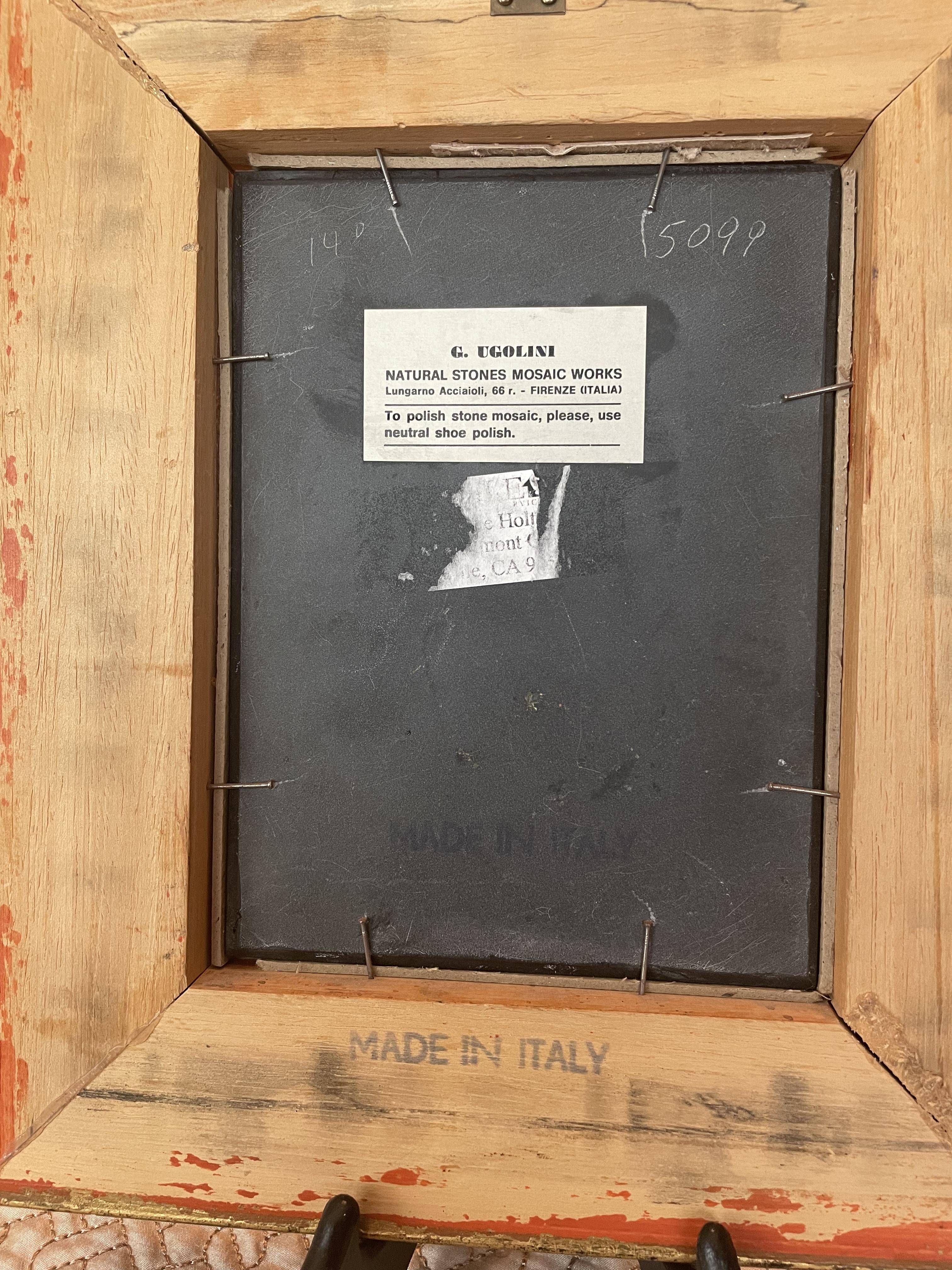 Stone mosaic slate backing with paper makers mark and made in Italy stamp