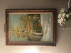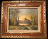 Lake landscape with large wintry moiuntain range. Fall type forestry on each side