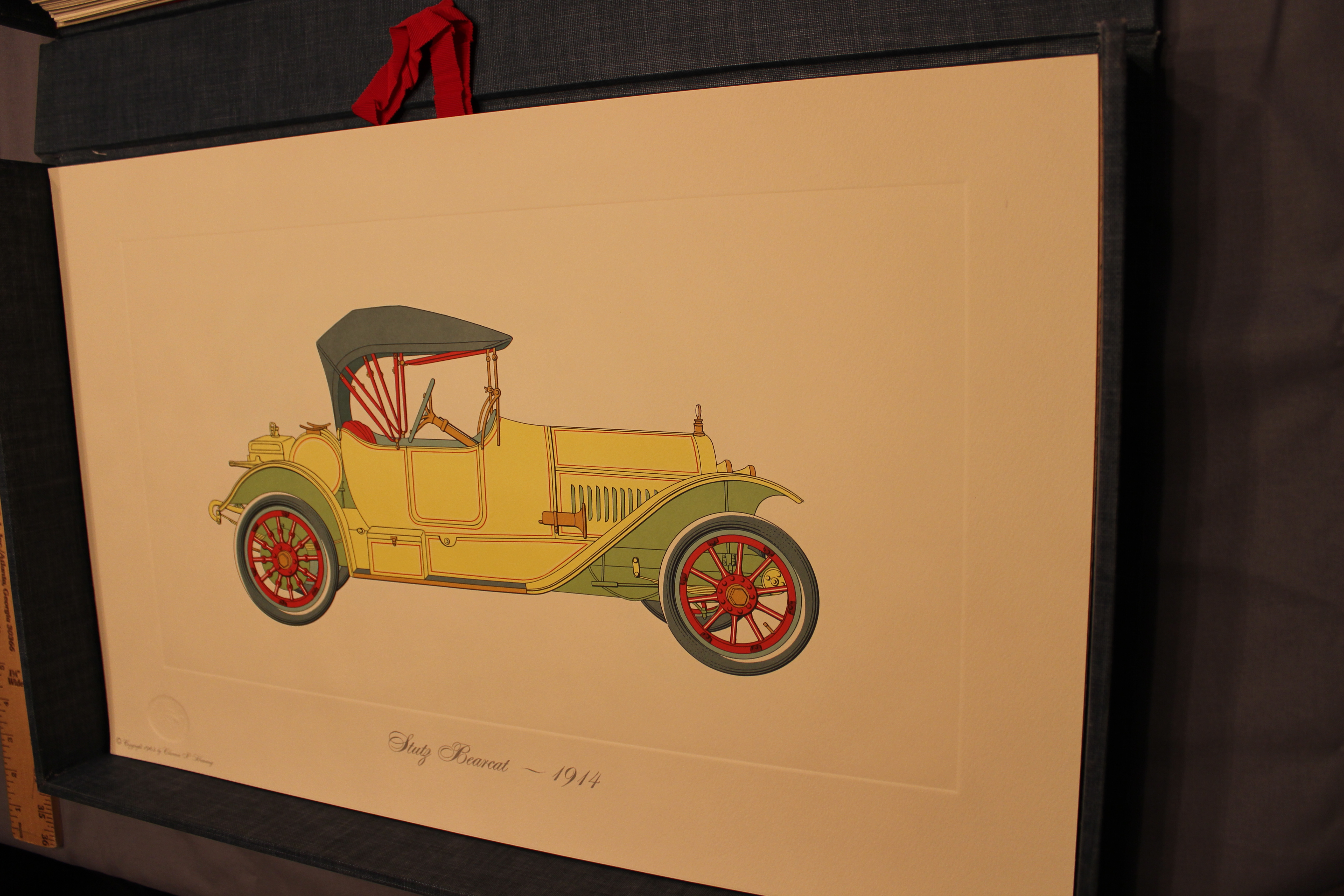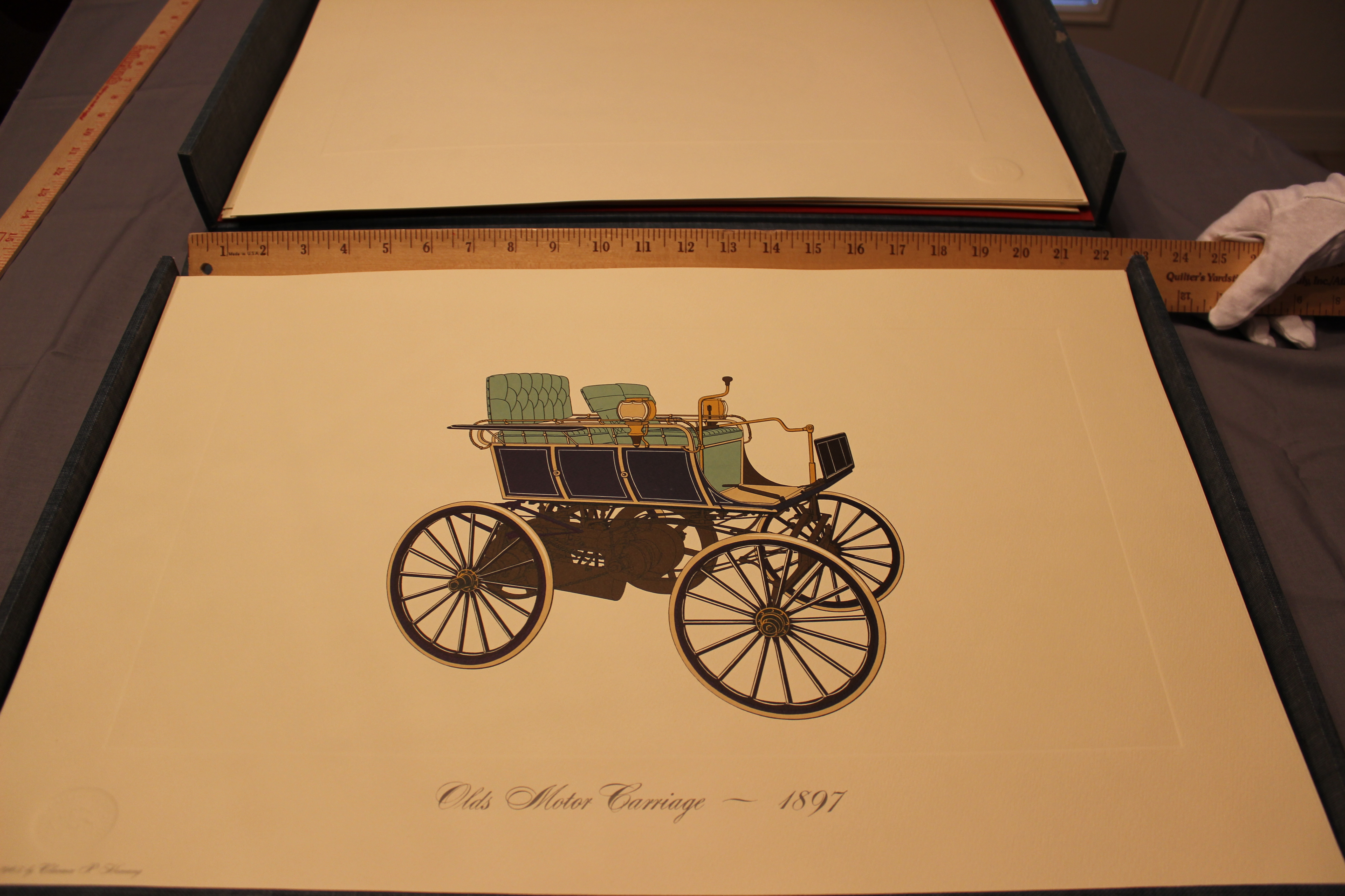 One hundred original individual colorplates 23 X 15 in the original hard cover portfolio set , illustrating the developement of the automobile in America from 1853 to 1915.