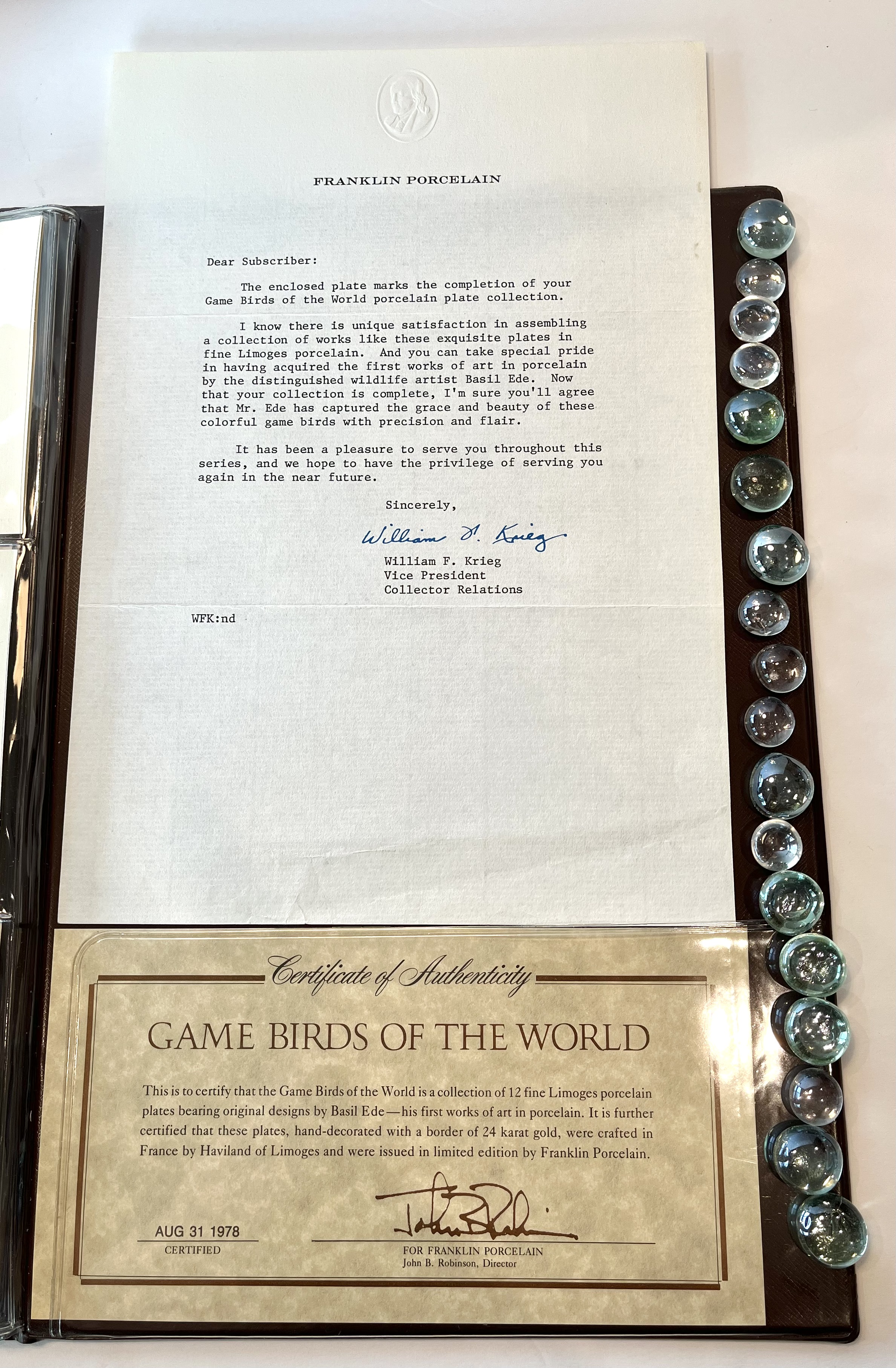 Documentation such as the certificate of authenticity enhances the value of this collection.