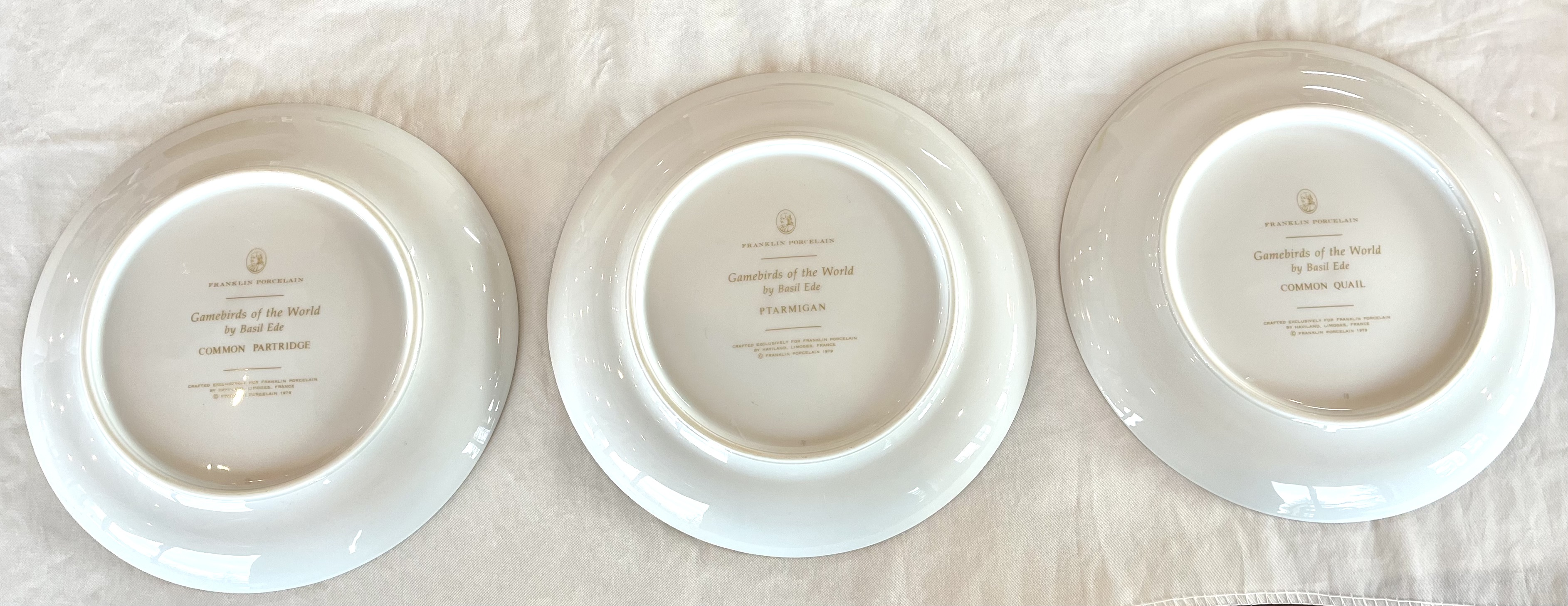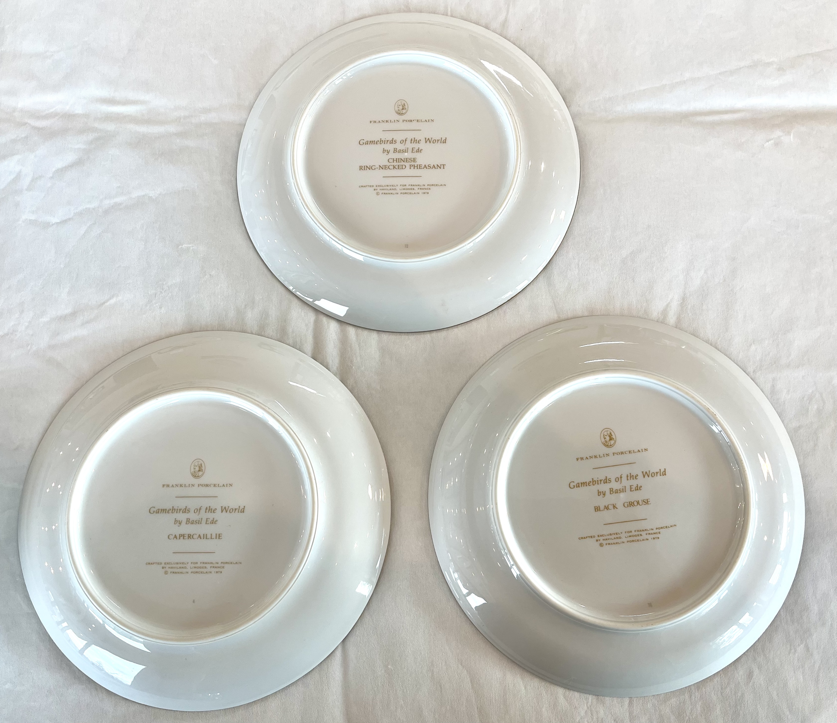 Game of Birds of the World (Franklin Porcelain). Made by Franklin Porcelain. Dating to 1978. Materials: Limoges porcelain, 24-karat gold. Estimated value: $150 – $200. Condition: Excellent. The market for porcelain collectibles is currently stable, with moderate demand.