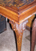 i really know nothing about it other than that it is coffee table height and has a glass top that shows down to the abalone/ mother of pearl below. Theres no chipping of any of the inlay and the inlay is set up in a sort of fish scale pattern. The only flaw is that the glass top has some scratching