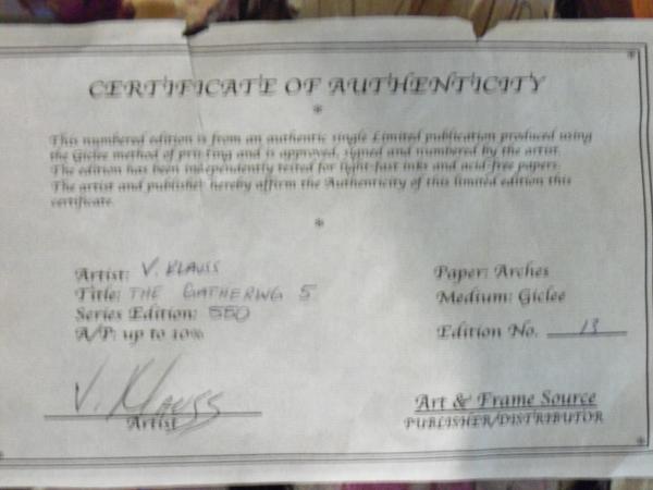 Picture is in a 6 inch deep frame, with tags showing who framed it.Certificate of Authenticity is included.