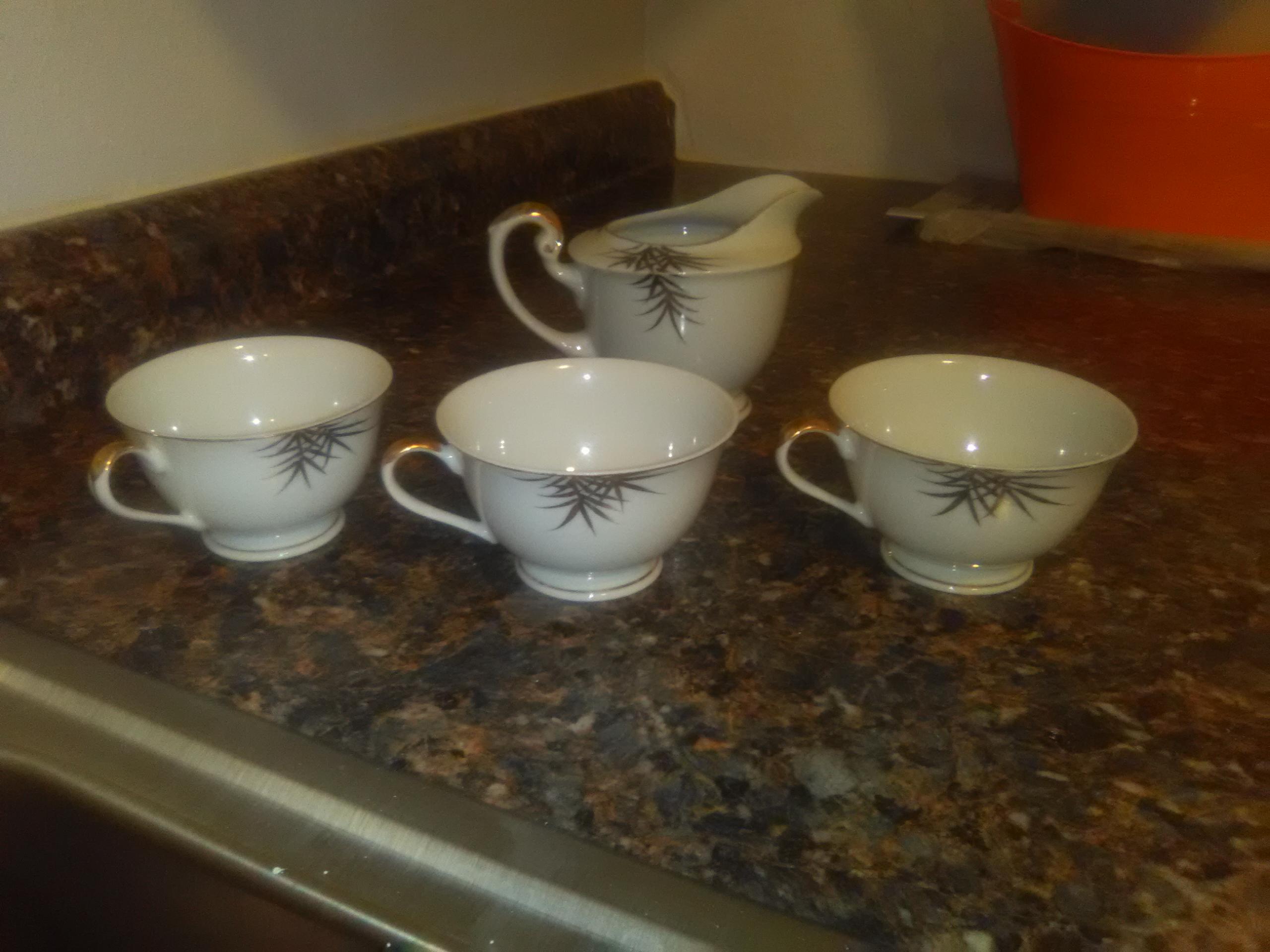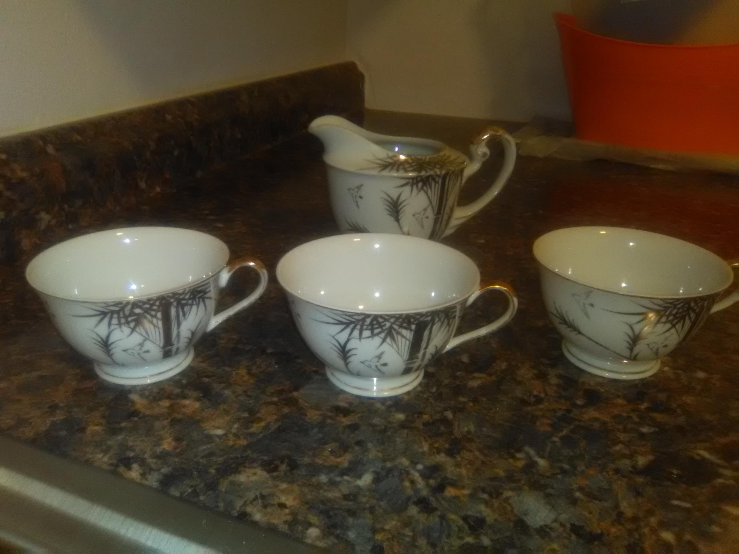 I have three cups with the imprint of a Geisha in the bottom with a tea server that has hieroglyphics on the bottom.
