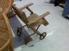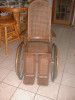 Made of wood and metal with a caned back and wood seat. Made by Gendron wheel Co in Perrysburg, Ohio. Catolog no 821 BA. It does not have a patient no on the chair.