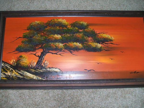 this painting was hanging in a garage owned by my boyfriend..it was the first thing i noticed my first time i was in...when he bought our house and he was packing up the garage i made sure we took it,he said it was there when he bought the garage..i'm not sure if the first letter in the signature is an e or a c... i think it's an awesome painting and would love to find out more about it!!!