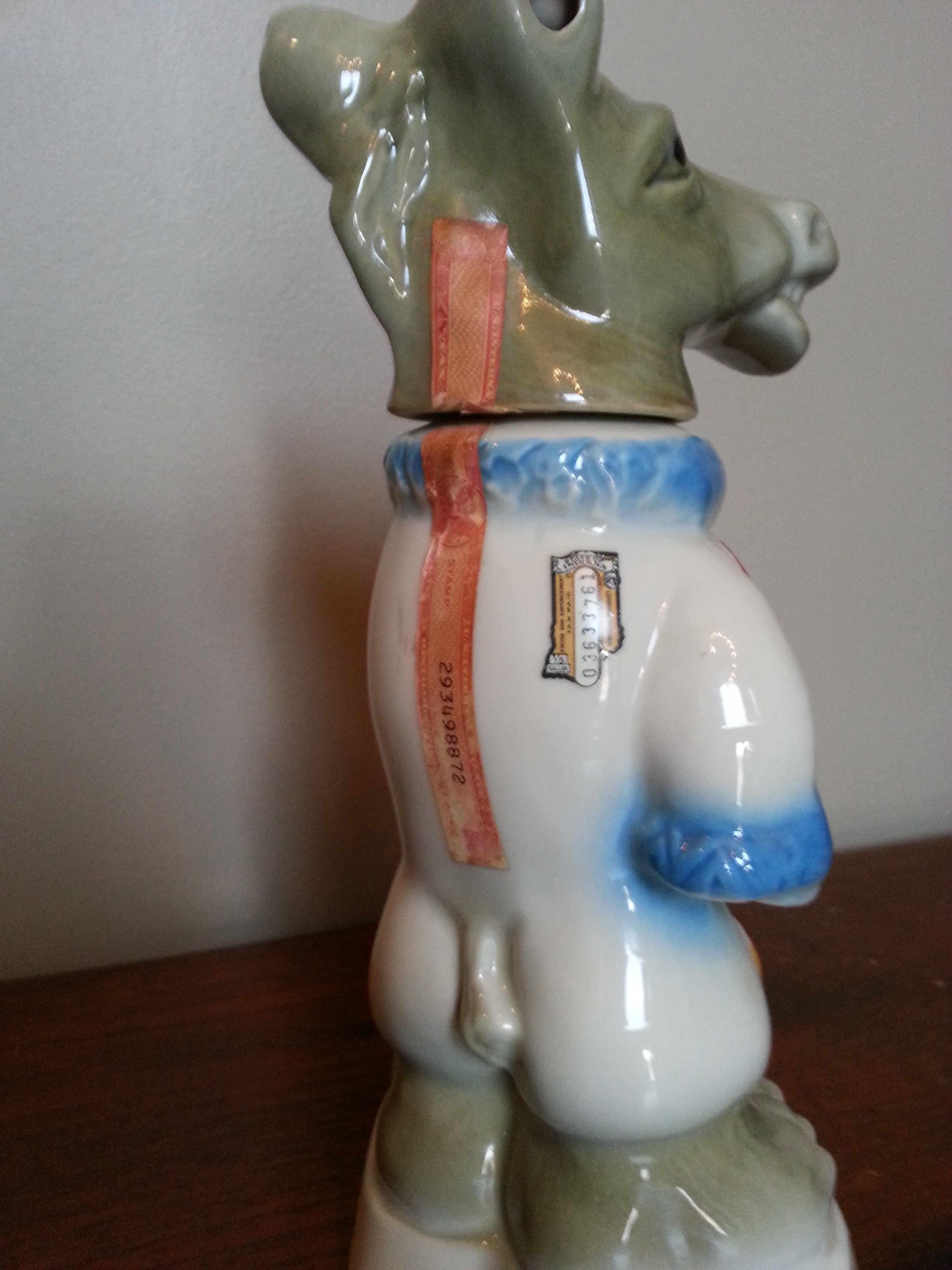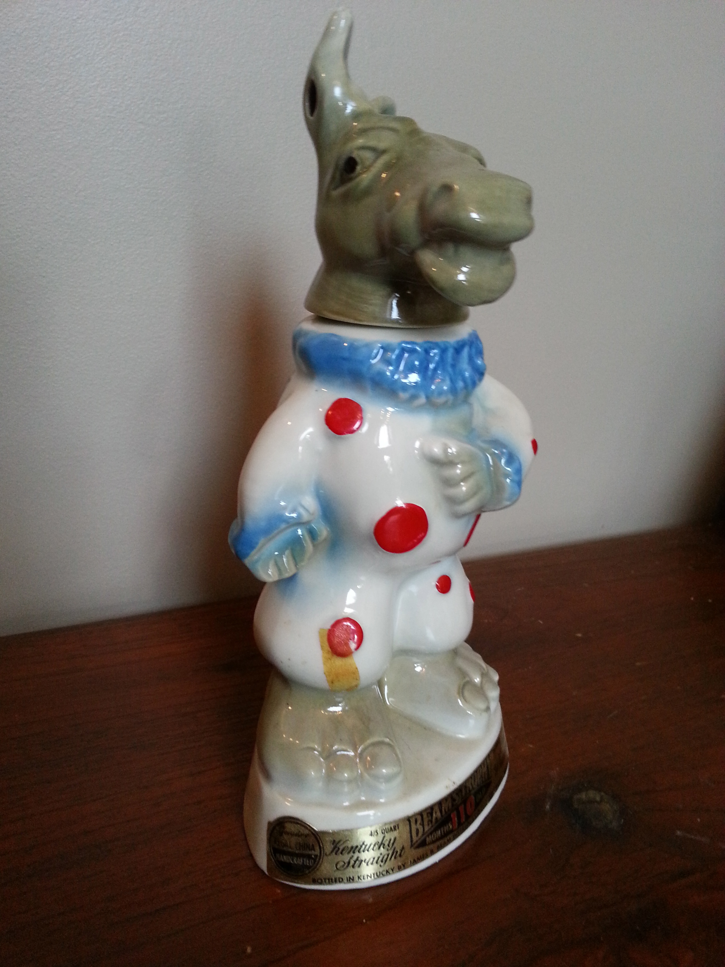 Democrat Clown Donkey Bottle. Has two stamped labels on back as shown in pictures.