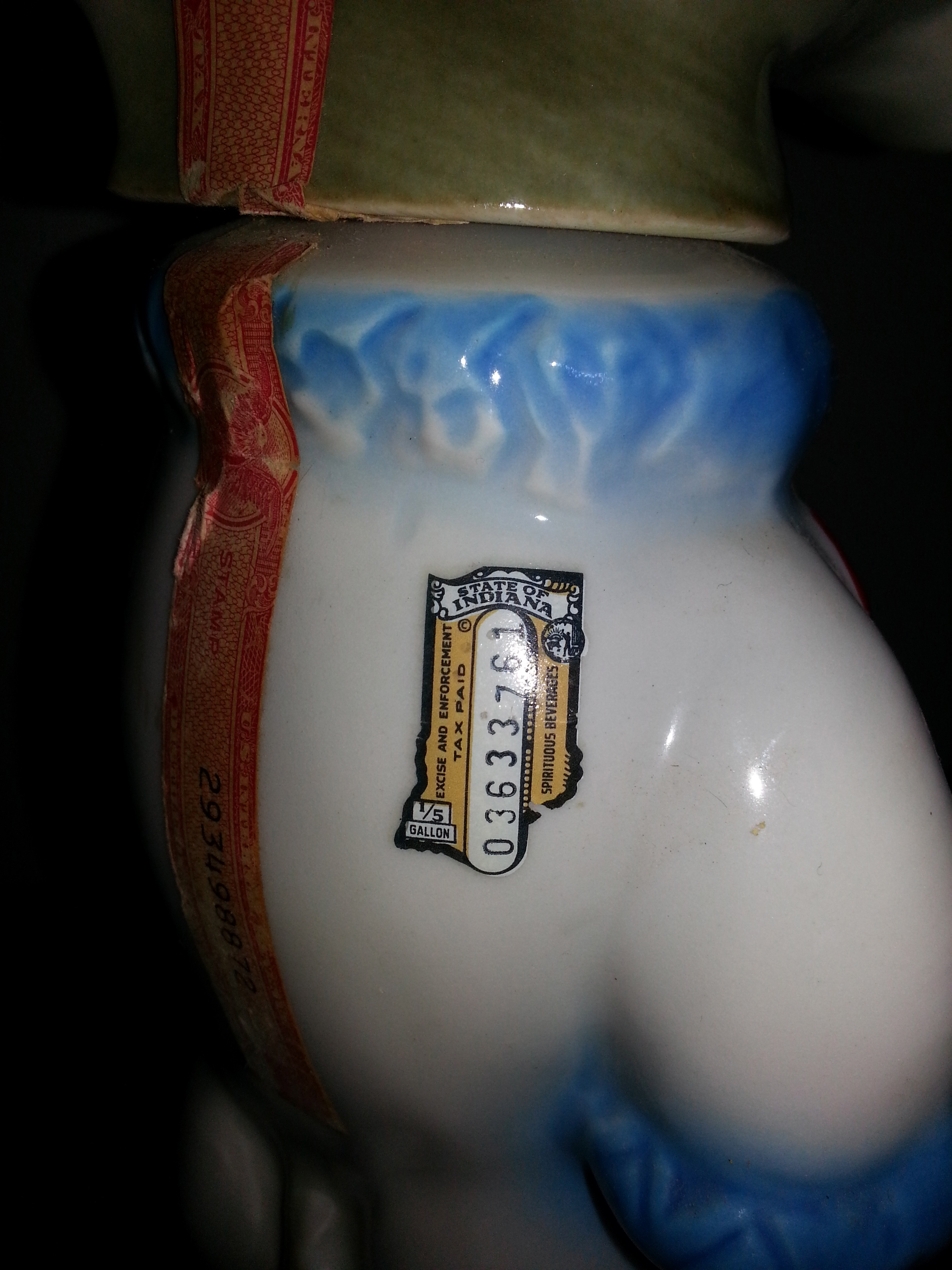one is orange colored... Indiana 1/5 gal excise and enforcement tax paid. #03633761