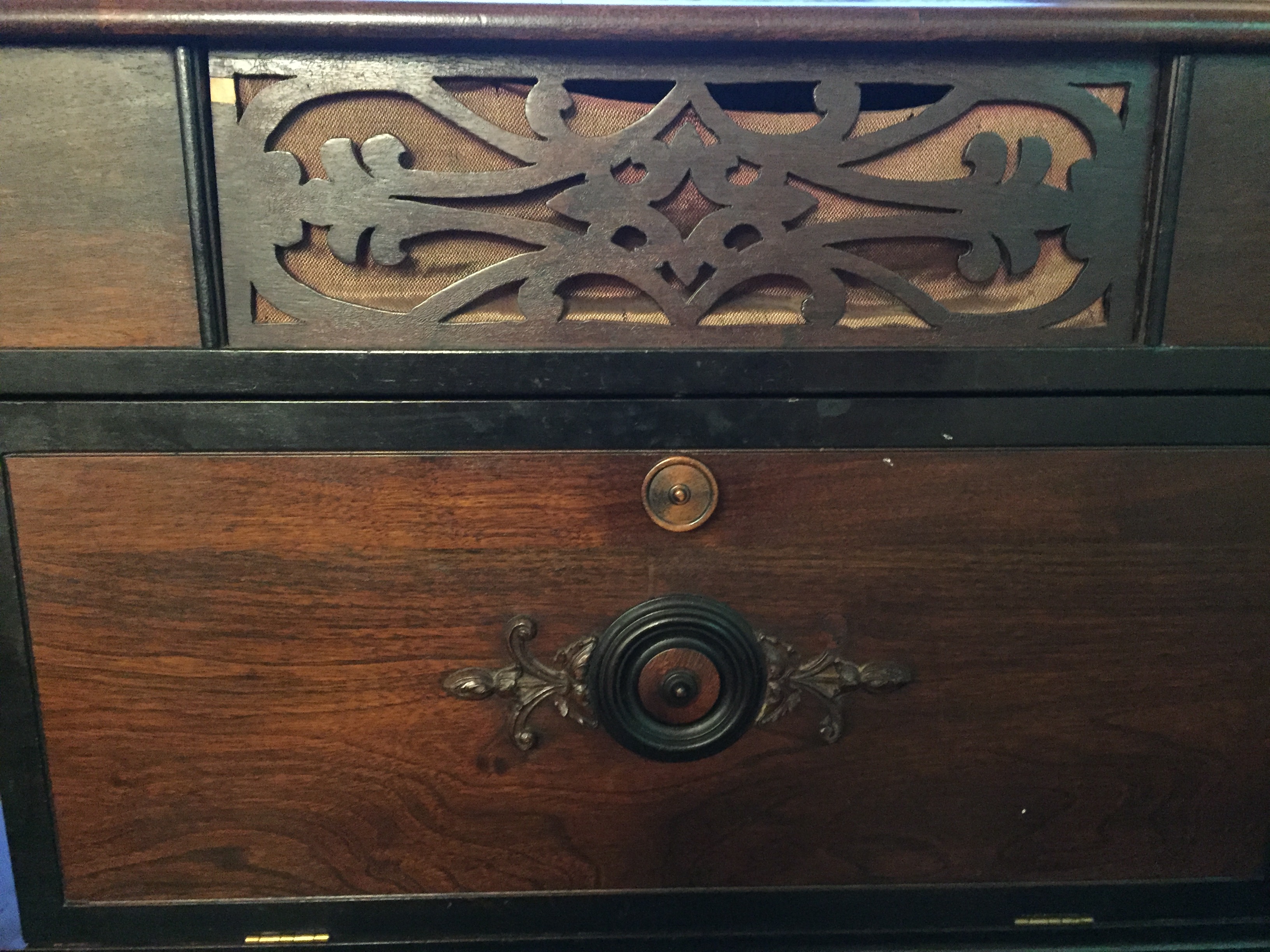 I’m not sure what you call this item... a cabinet? Buffet? I’m wondering what it would be called and what the value is. I’m not sure what that piece is behind the wooden panel??