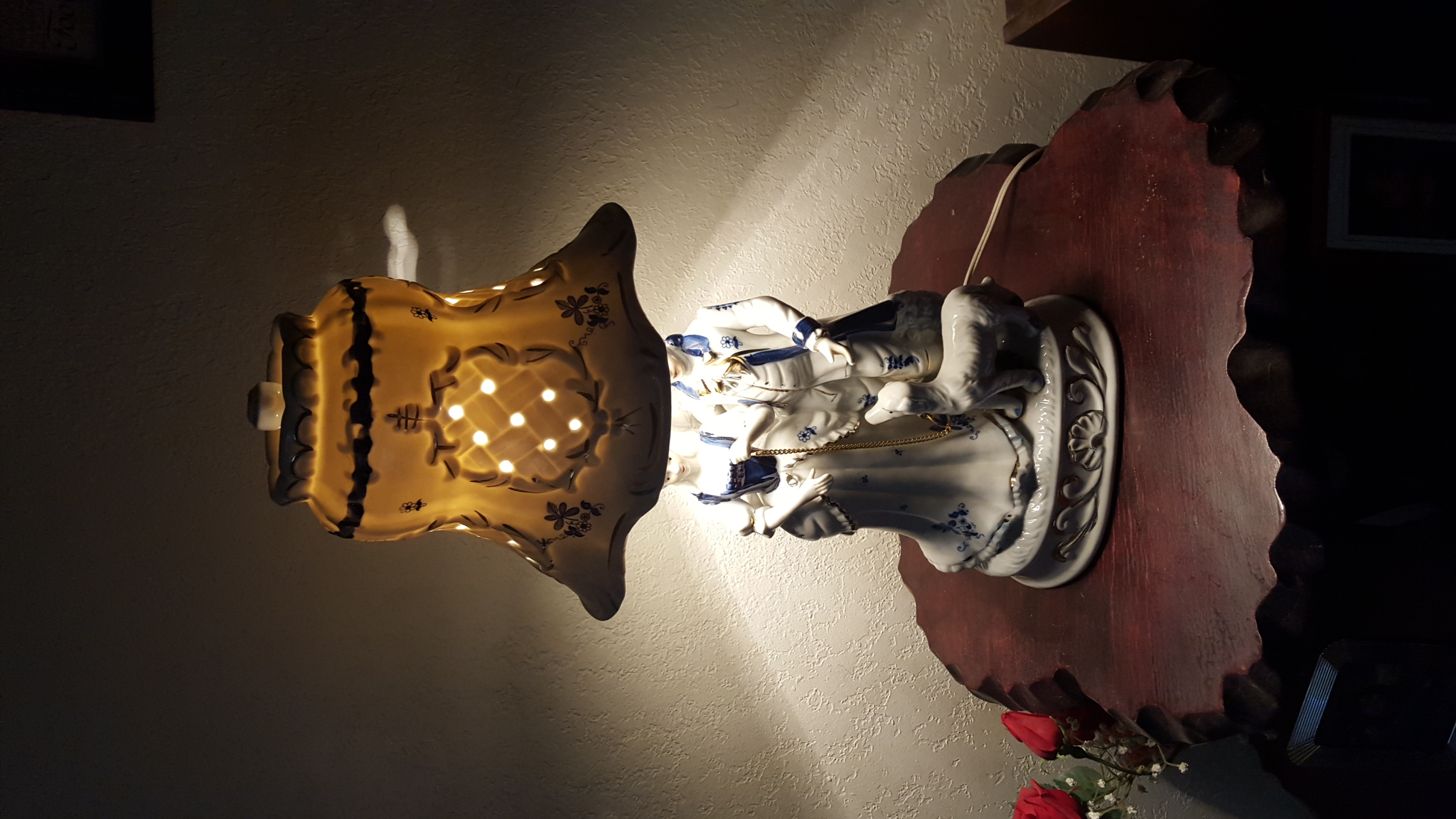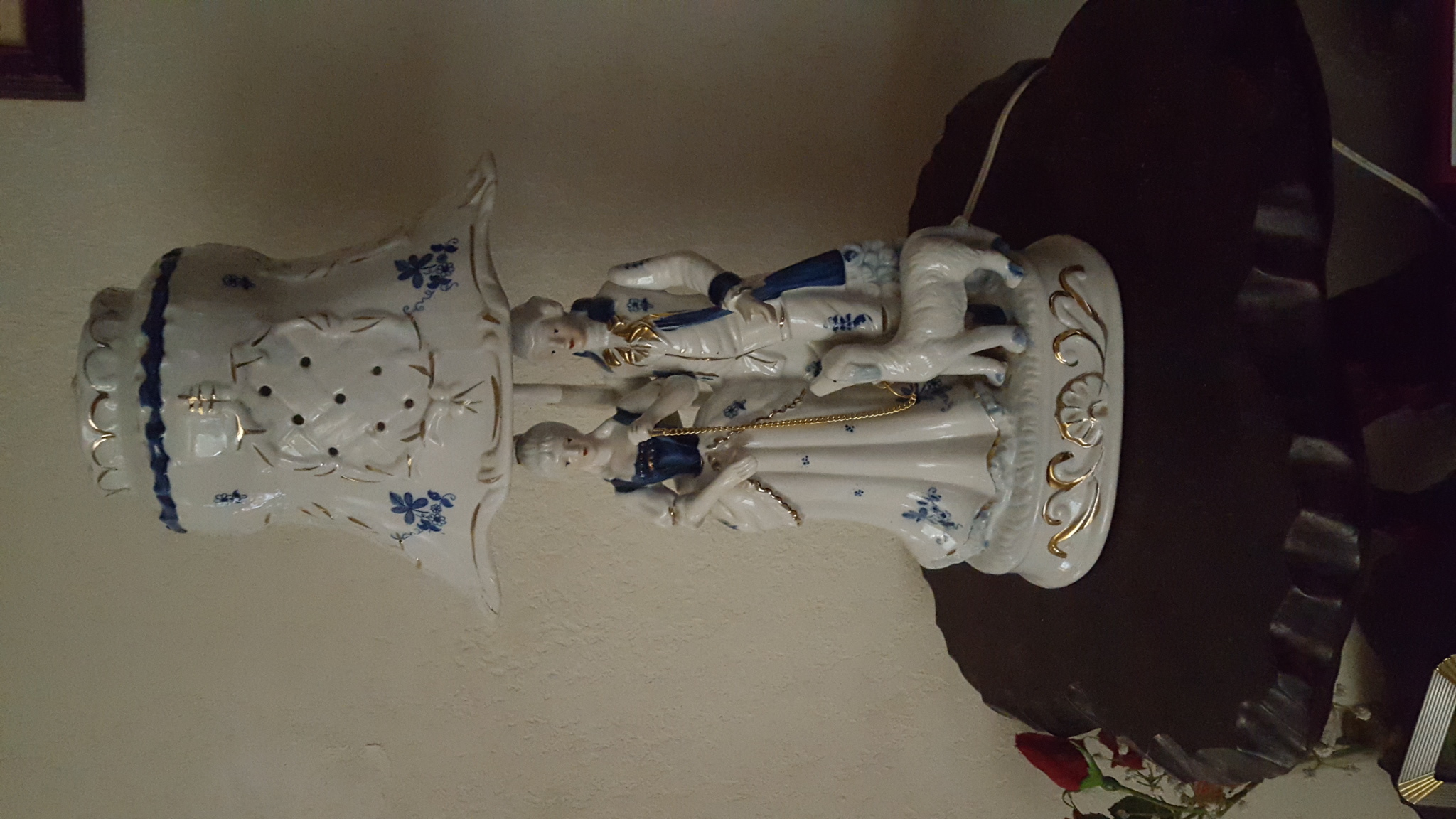 This lamp shows george and martha washington walking a dog. Martha is holding the gold colored leash. I believe it is porcelin. I have an offer for $50, should i be getting more?