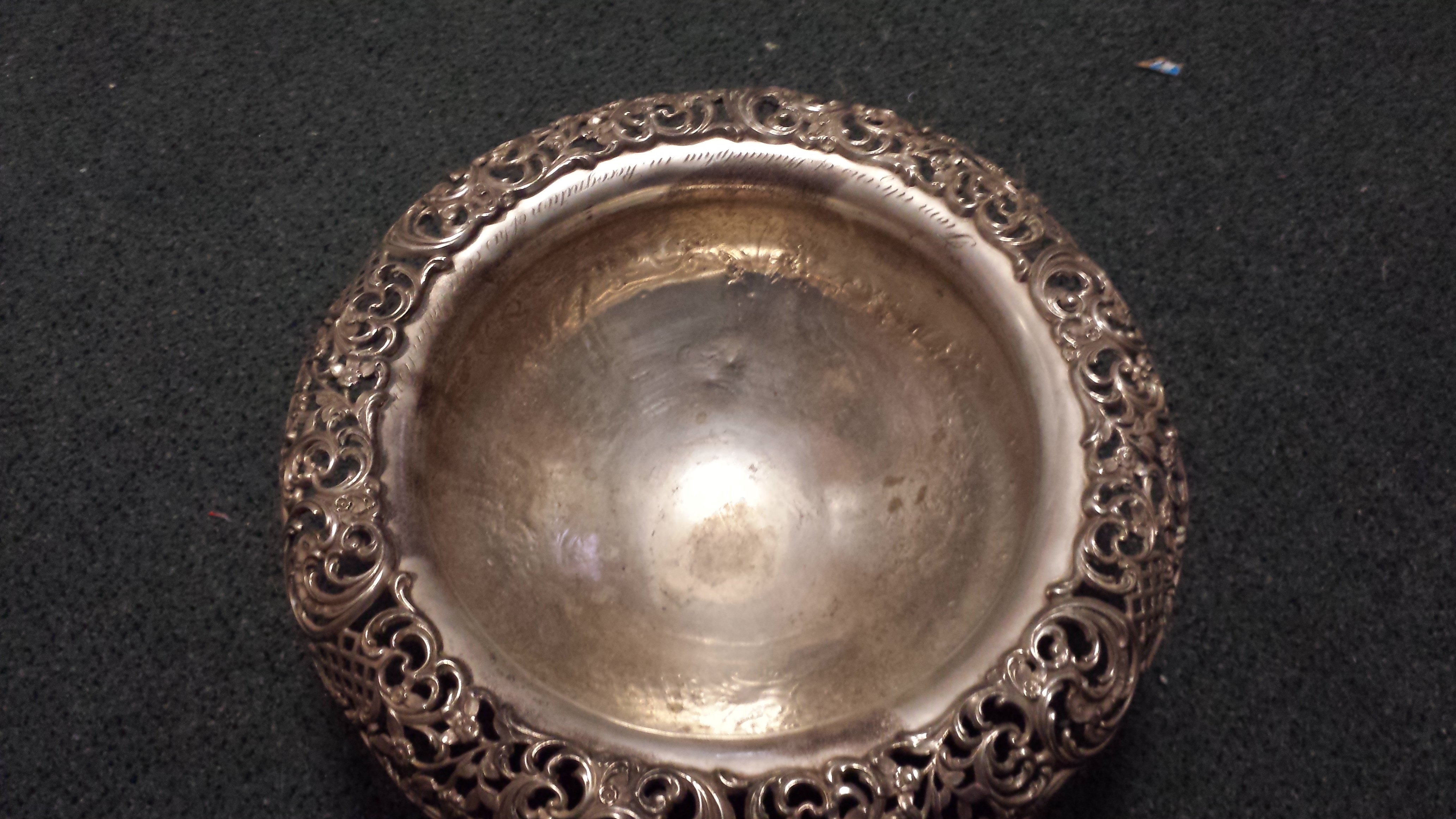 Description This is a silver bowl Givin to George Burnham Jr by the citizens of Philadelphia in 1911. On the inside rim it reads "From citizens of Philadelphia in recognition of his civic patriotism" the front is engraved with "George Burnham Jr 1911" on the bottom are stamps c110 and I think it's Caldwell & Co. 925 sterling 1000 Philadelphia.