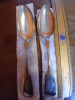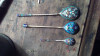 These spoons are in very good condition with no damage, but some wear and tarnishing due to age. They are each different color shades of yellow green blue and purple