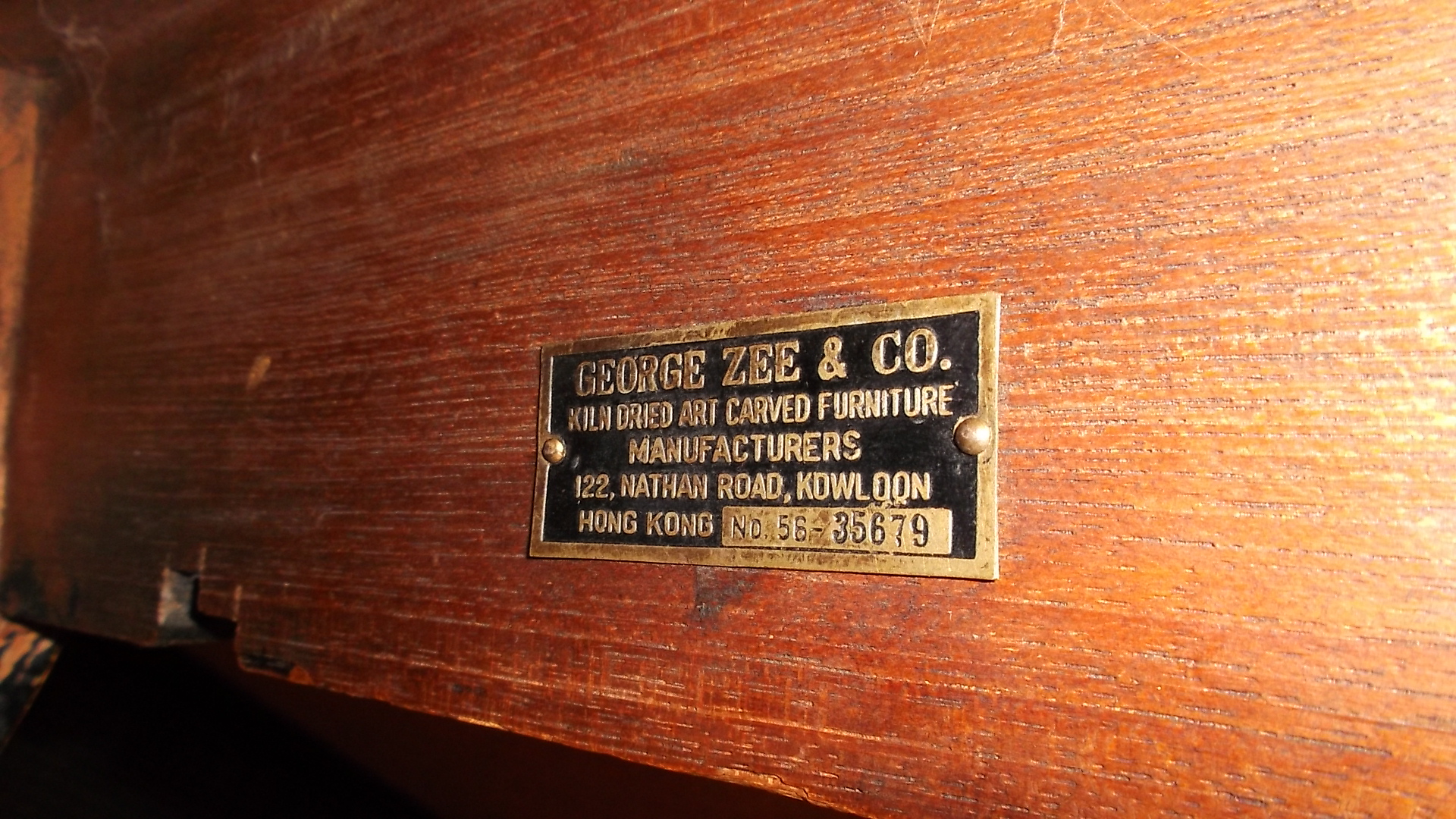 I have a George Zee & CO. hand carved coffee table from 1957. I even have the original receipt. It was bought on October 6th, 1957 for $50.00. The serial # from the receipt is k222. The metal plate on the bottom of the table has # NO 56-35679. This piece is in very good condition and I would be willing to sell for the right price.