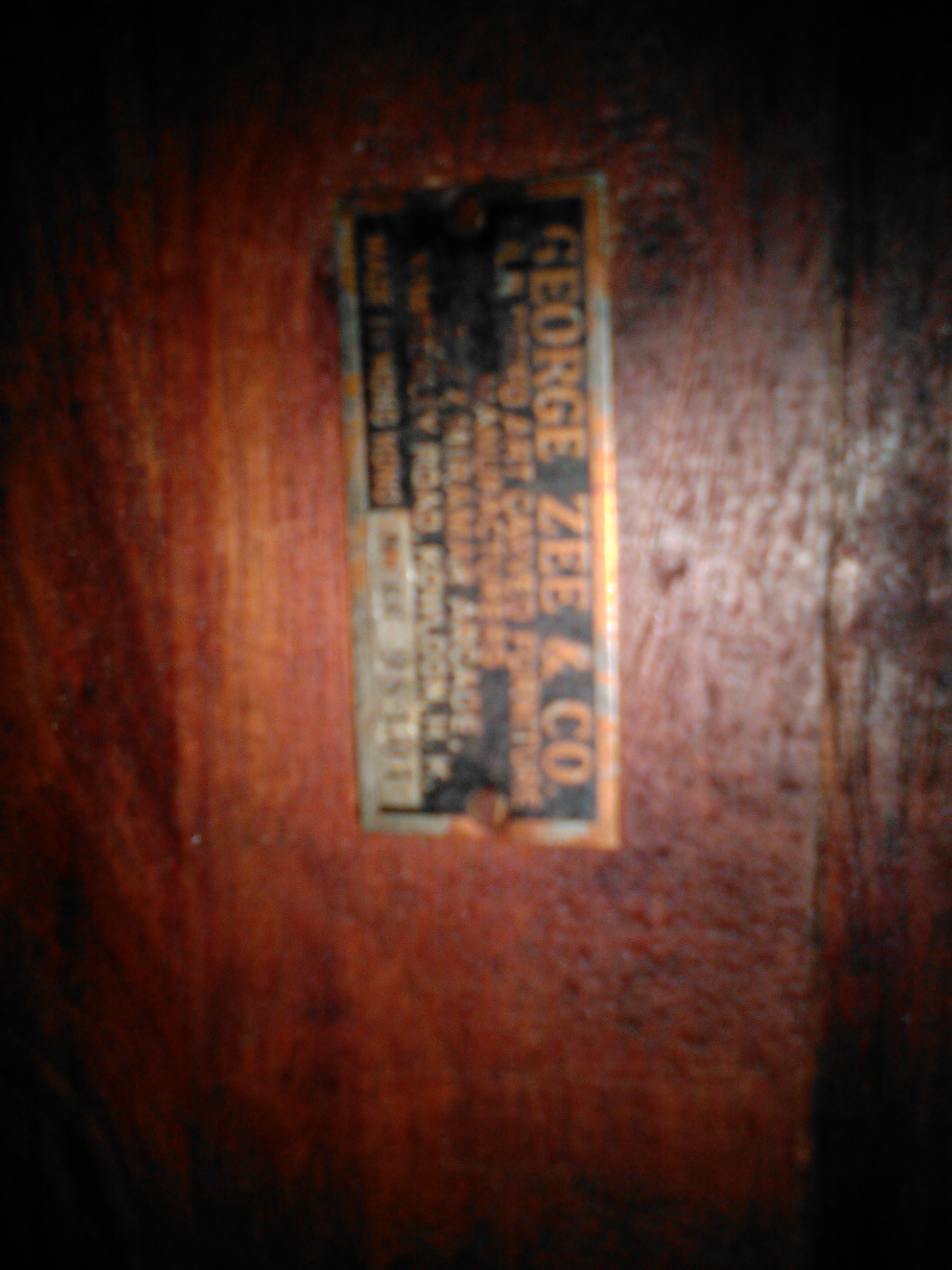 I have a George Zee & Co. Coffee Table. It's got a medal stamp on the bottom of the table. The stamp has the company name and other things also has an, "no. 66-98 101". That's all I know. Can't upload pictures because it says its attachments too large.