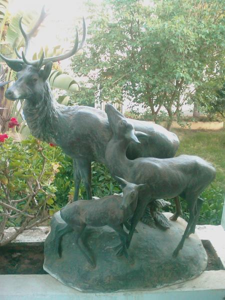 from 1908 ,a bronze sculpture of the famous french artist georges gardet : cerf biche et faon , a replica exists in the parc of sceaux in france