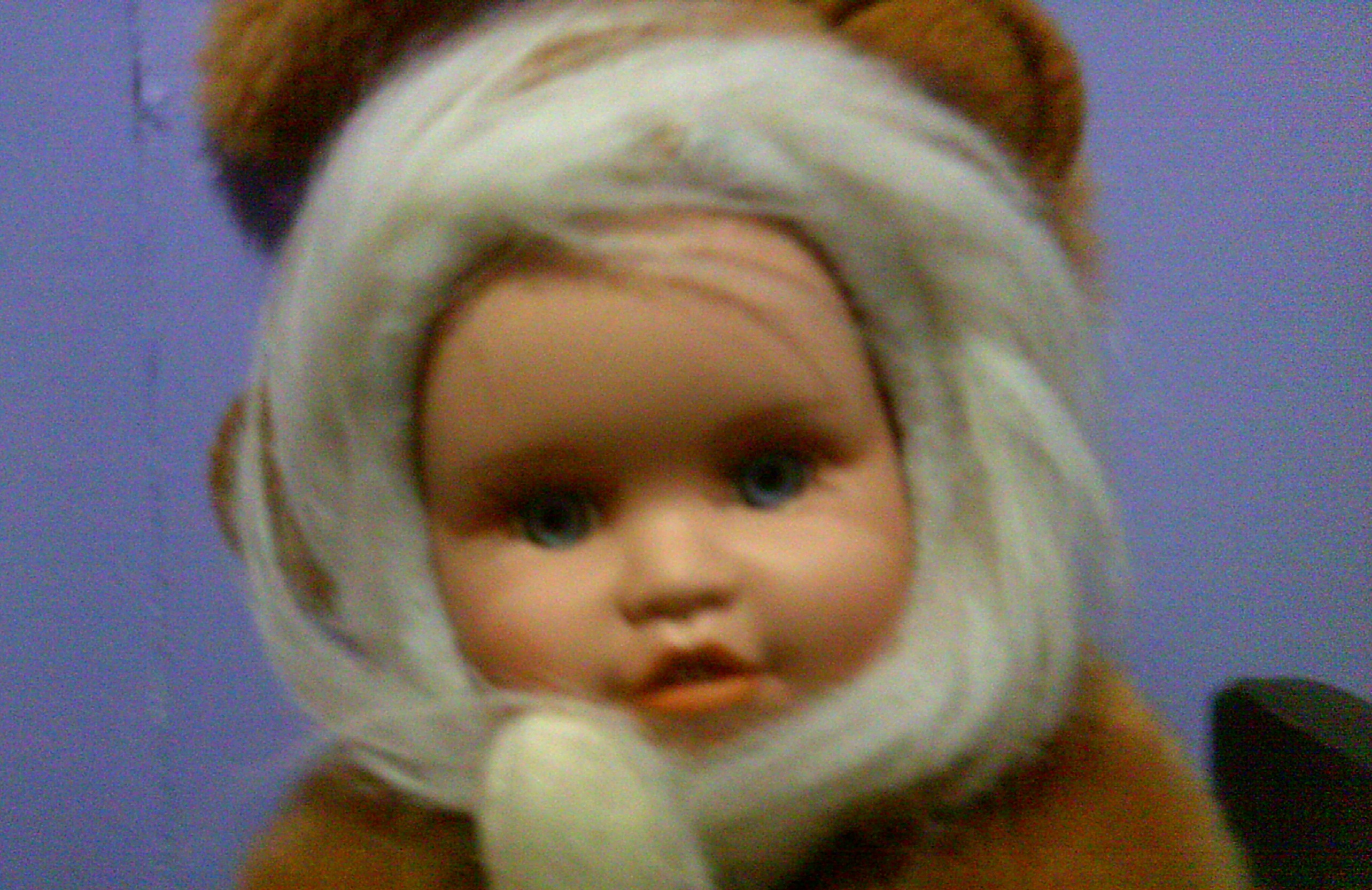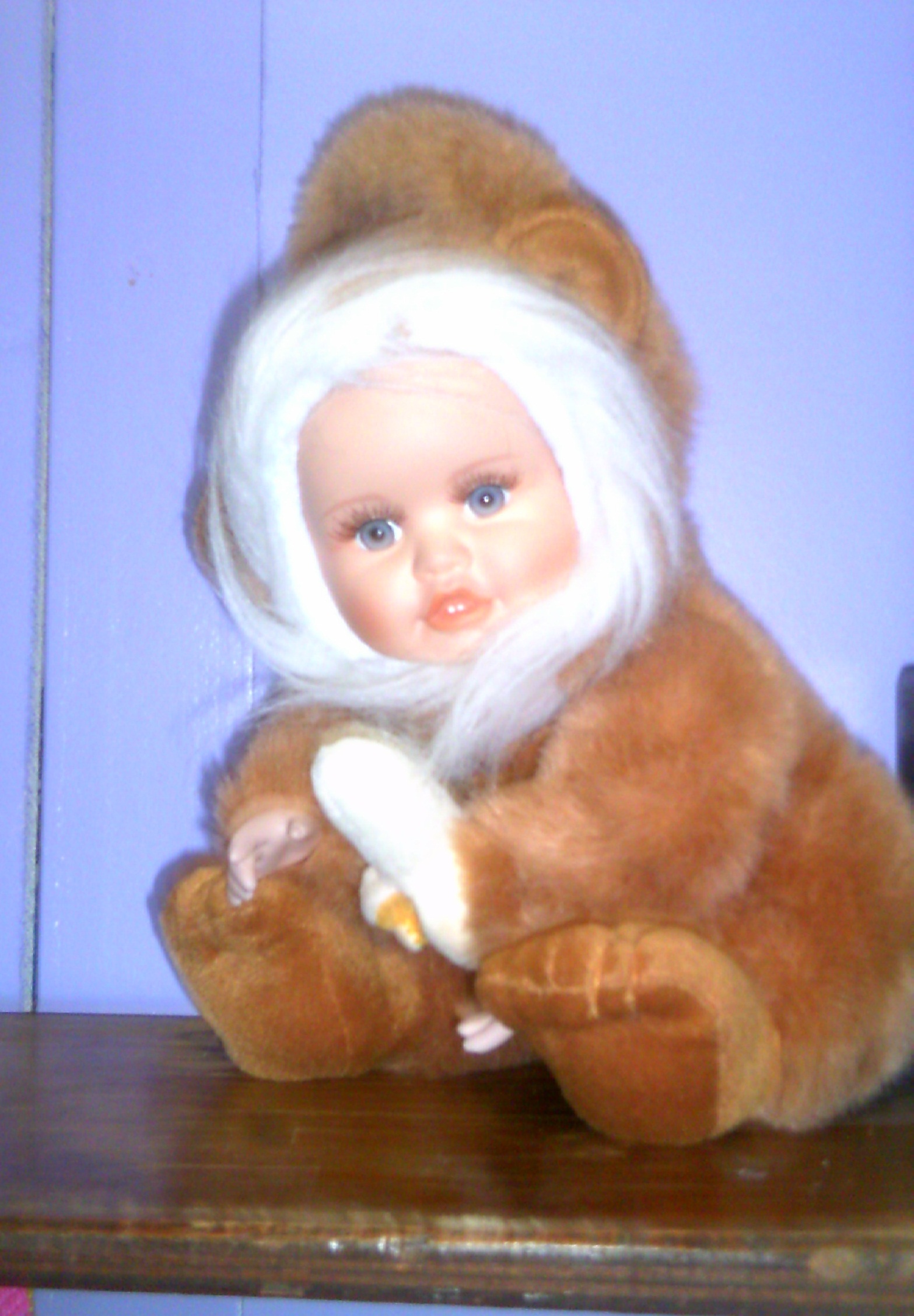 The very back of the head has from being broken, but are unvisible in front and behind monkey costume. He has few little dots on his left cheek, they are not freckles! Otherwise very excellent condition I'd say.