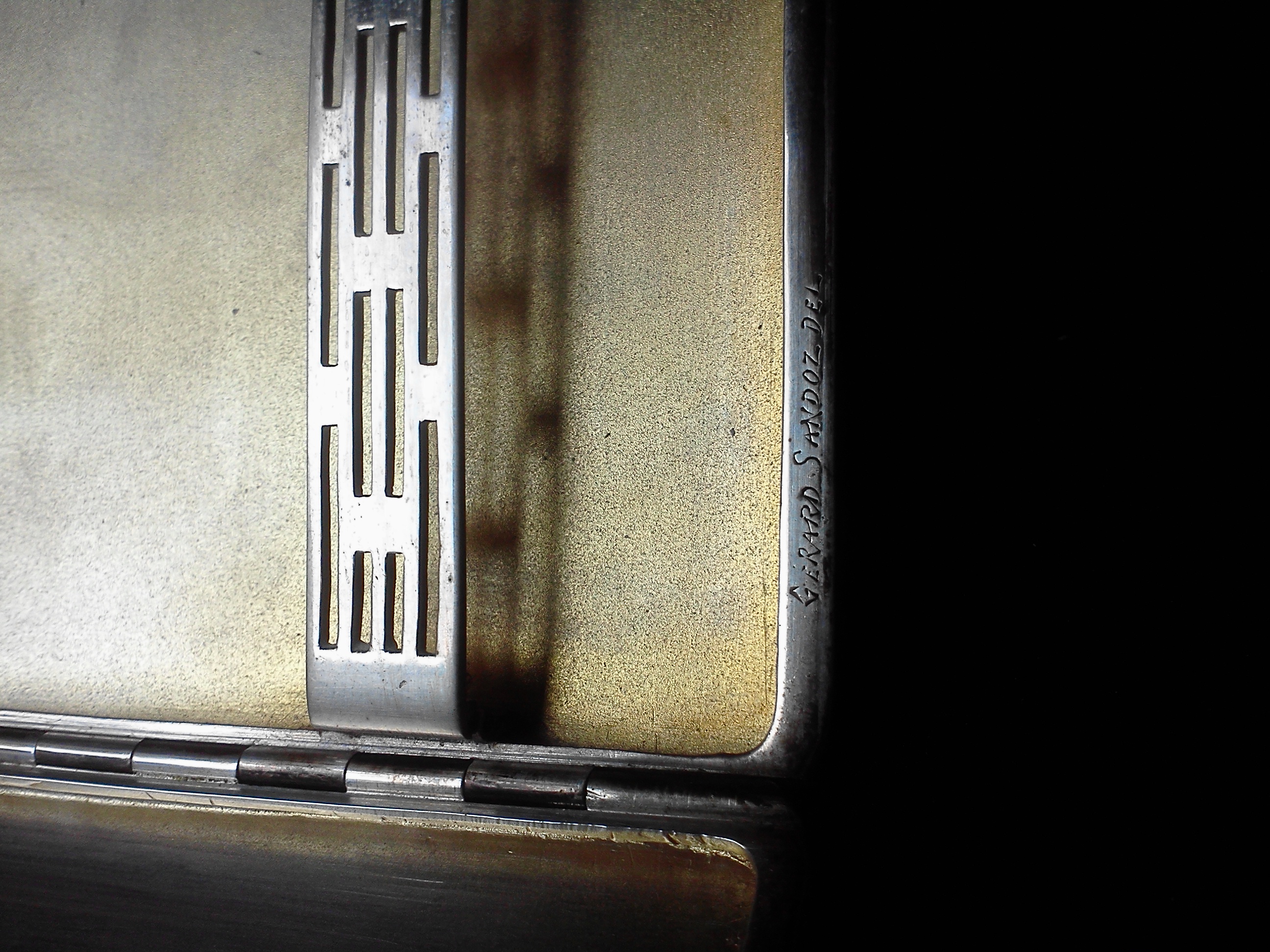 Art deco cigarette case. Gerard Sandoz Del inscription. Black Starr & Frost inscription. Made in france inscription. Also "personal gifted" inscription.