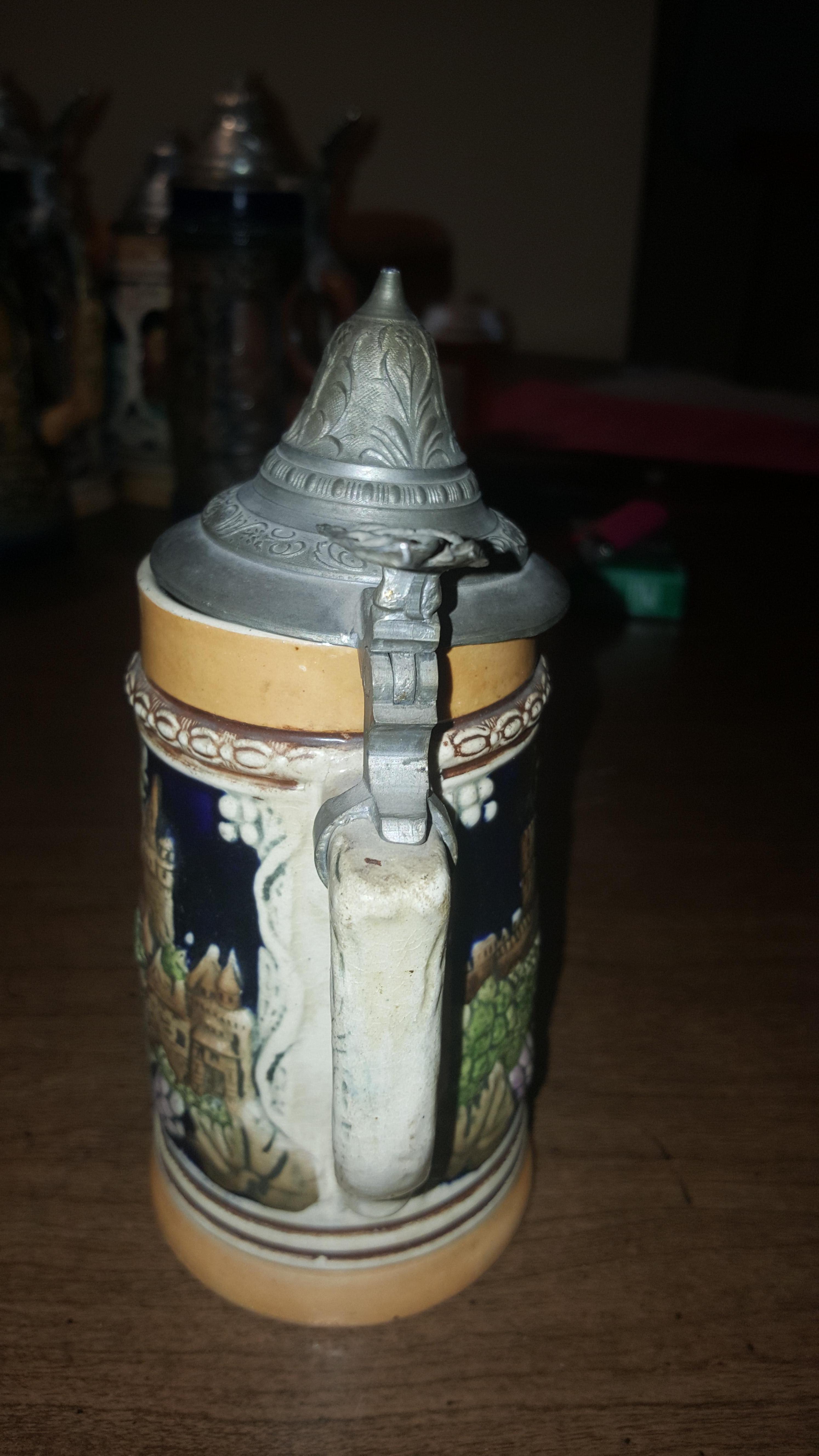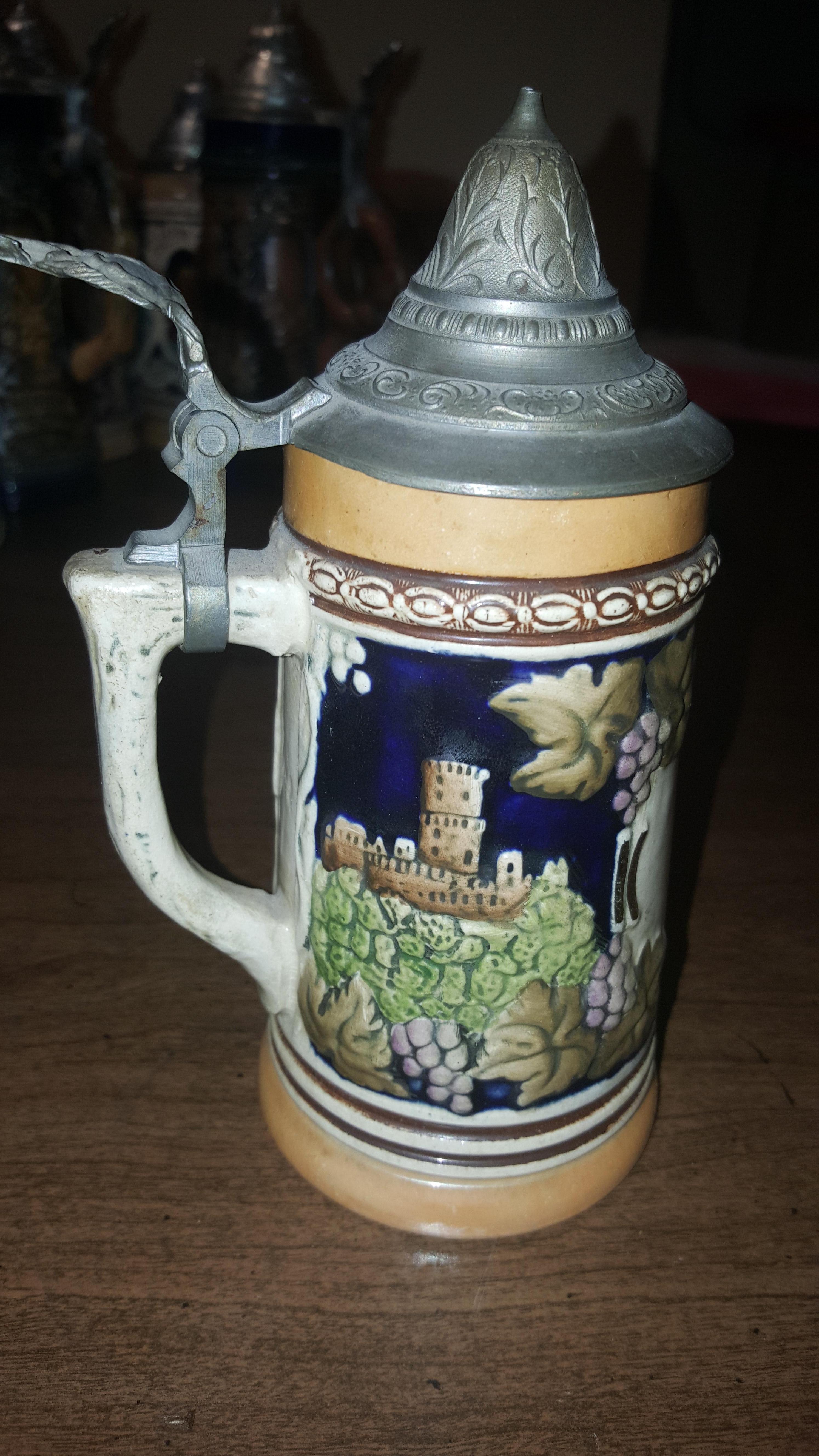 Based on the images this stein is not an antique and was purchased new. It's of a type made for the Export market after World War Two. Many of these were shipped home by Troops stationed in Germany. Values for them are modest, they often sell on Ebay for under $75.00.