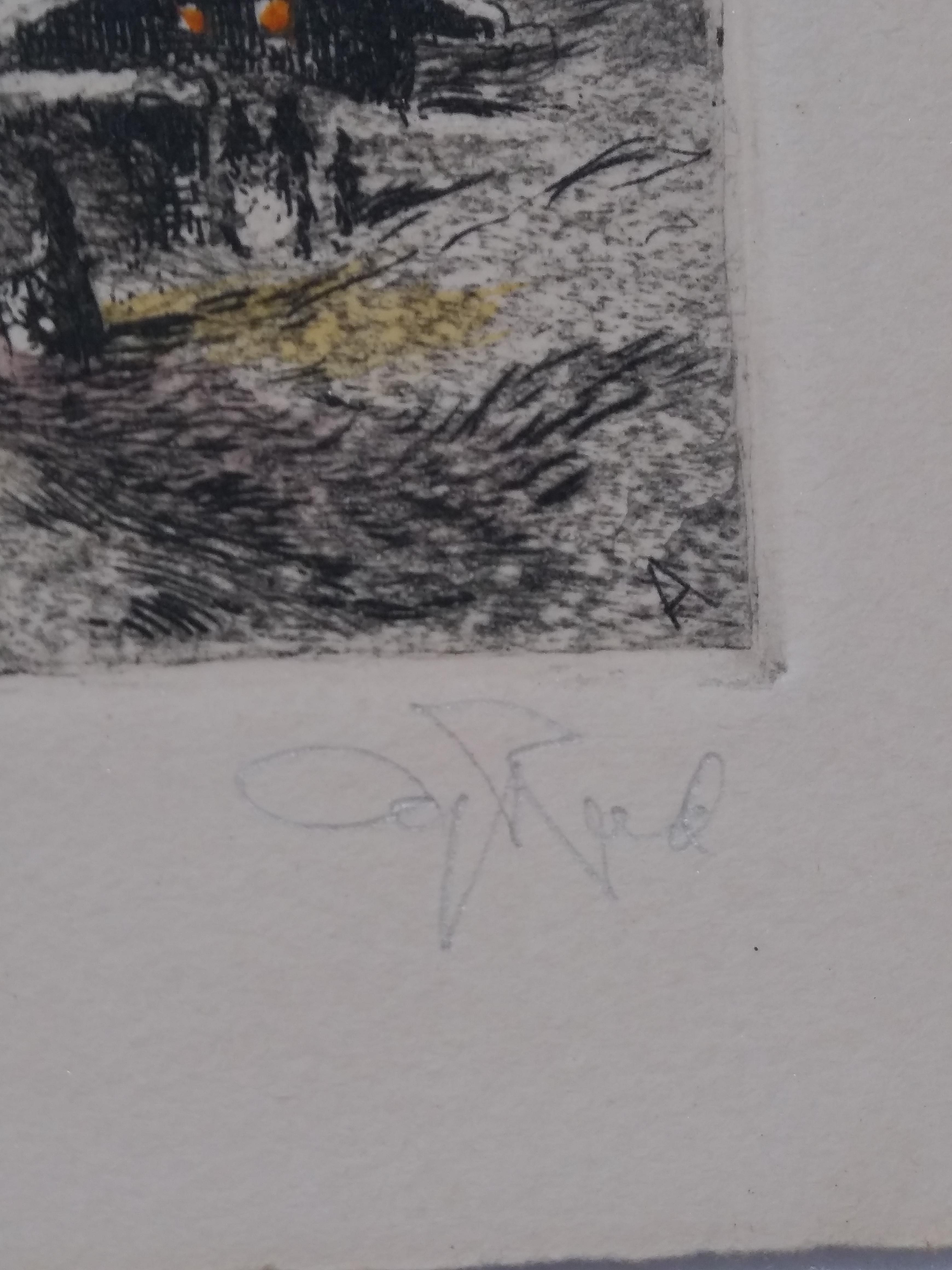 Haven't had any luck identifying the signature on this. Can't tell if its a print or original. I thought it was a lithograph but after breaking out the magnifying glass I think its an original watercolor. Any ideas?