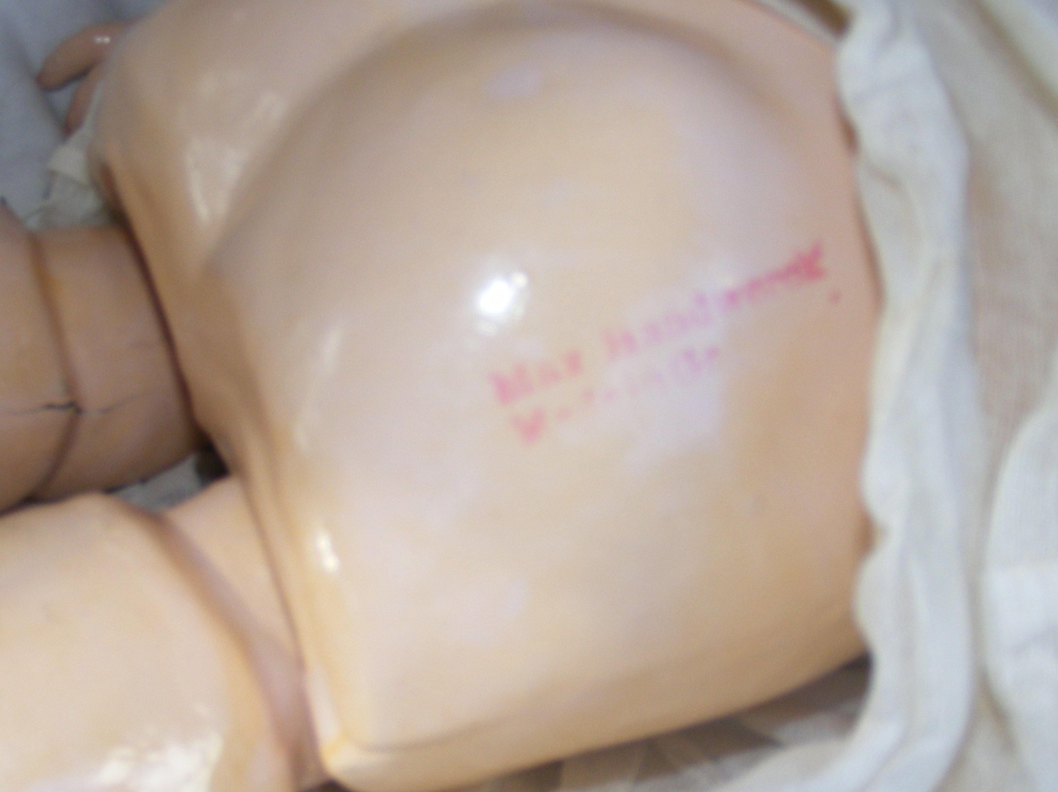 Distinguishing marks MAX HANDWRECK ON THE DOLLS BOTTOM,