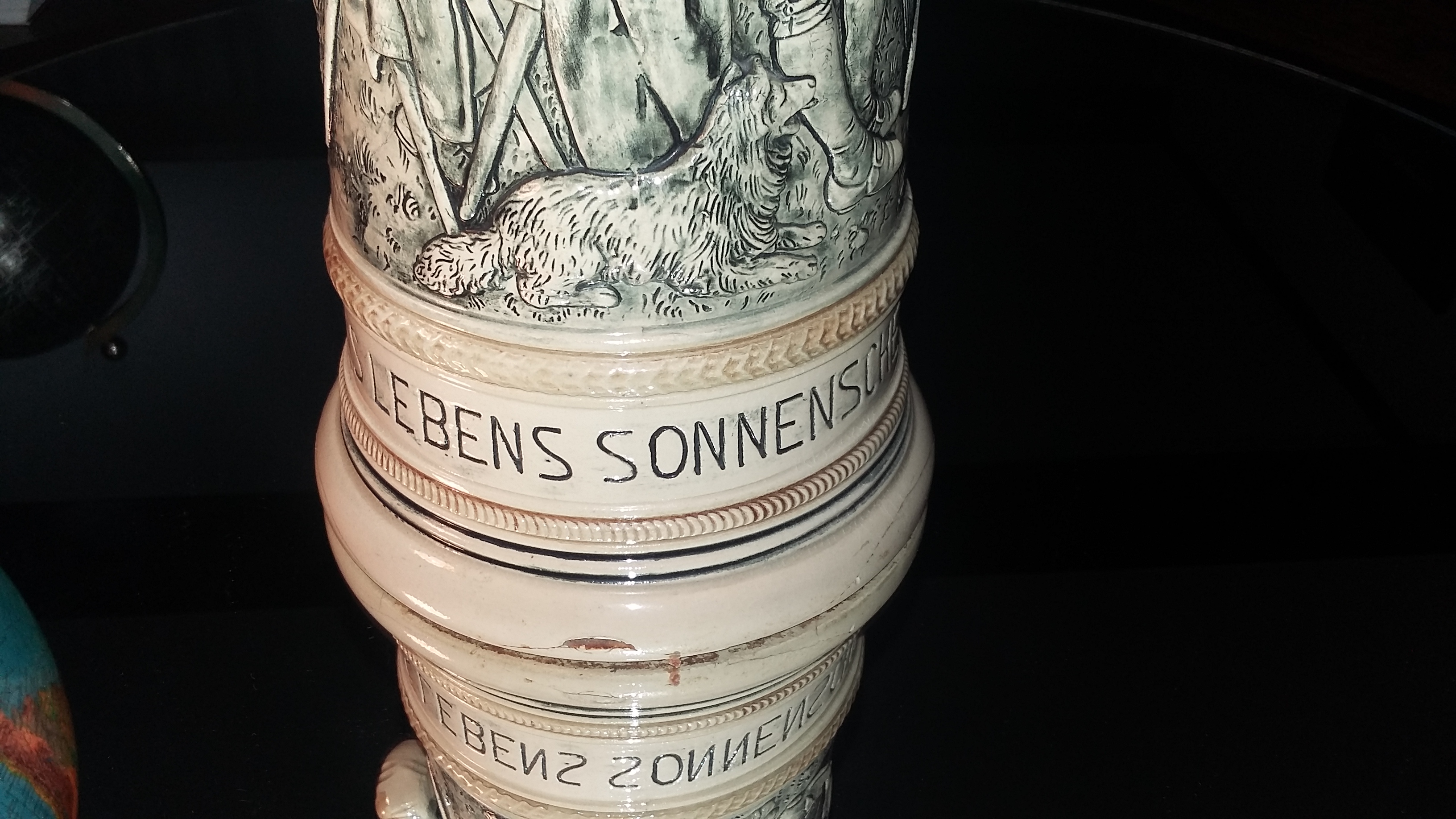 This is a very lagere stein, nicely decorated, Gerzit Germany; i searched but cant find this one anywhere.