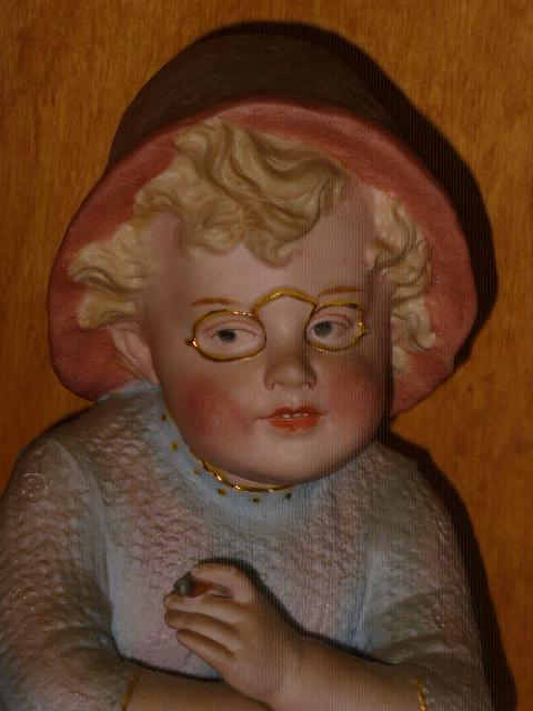 My grandfather was an Optician in BelAir, Maryland. (He passed away around 1948 at a very young age). This boy with spectacles was placed next to another young boy, a tall piece wearing very dapper clothes and spectacles as well, in the front window of his storefront.