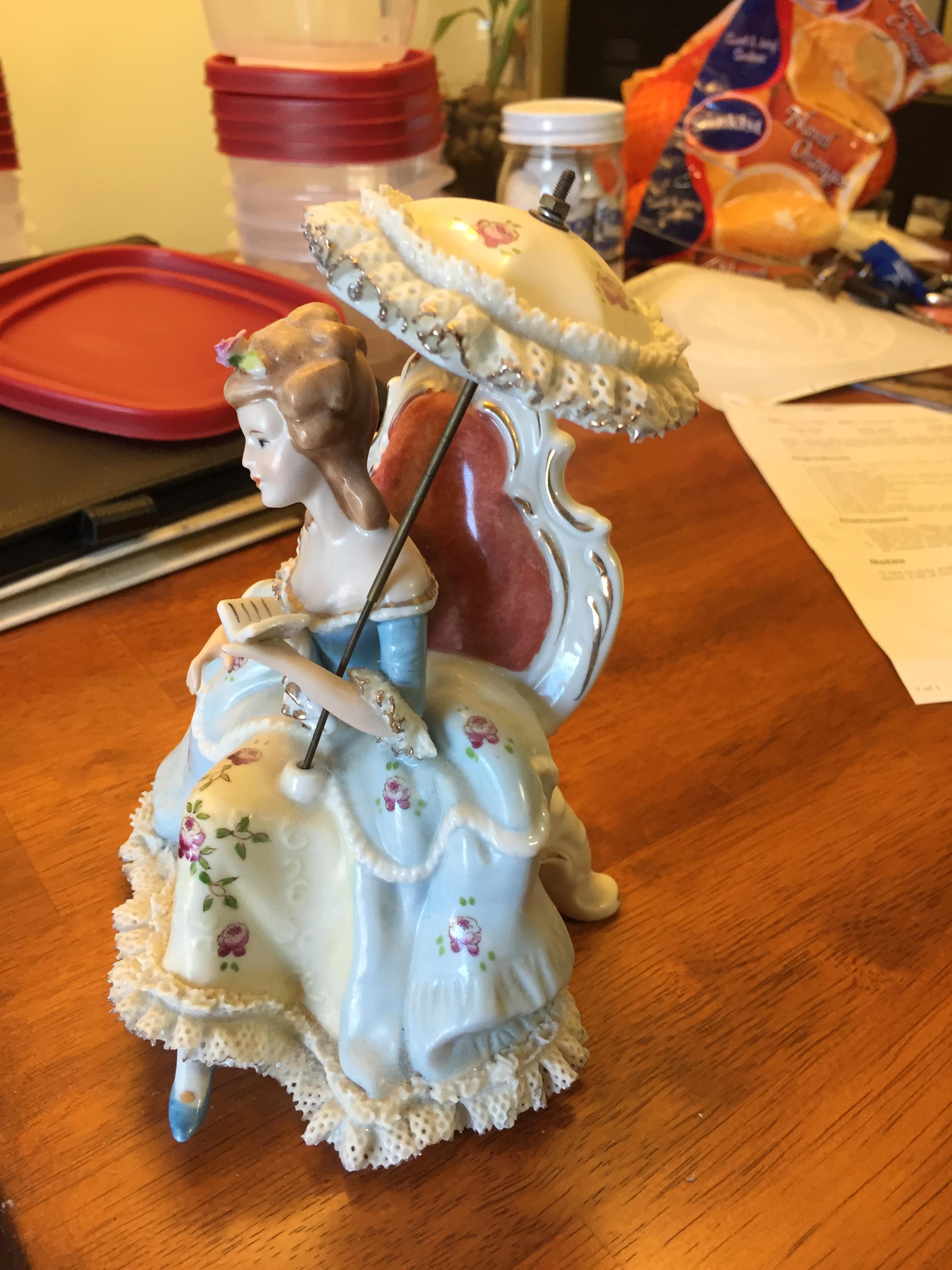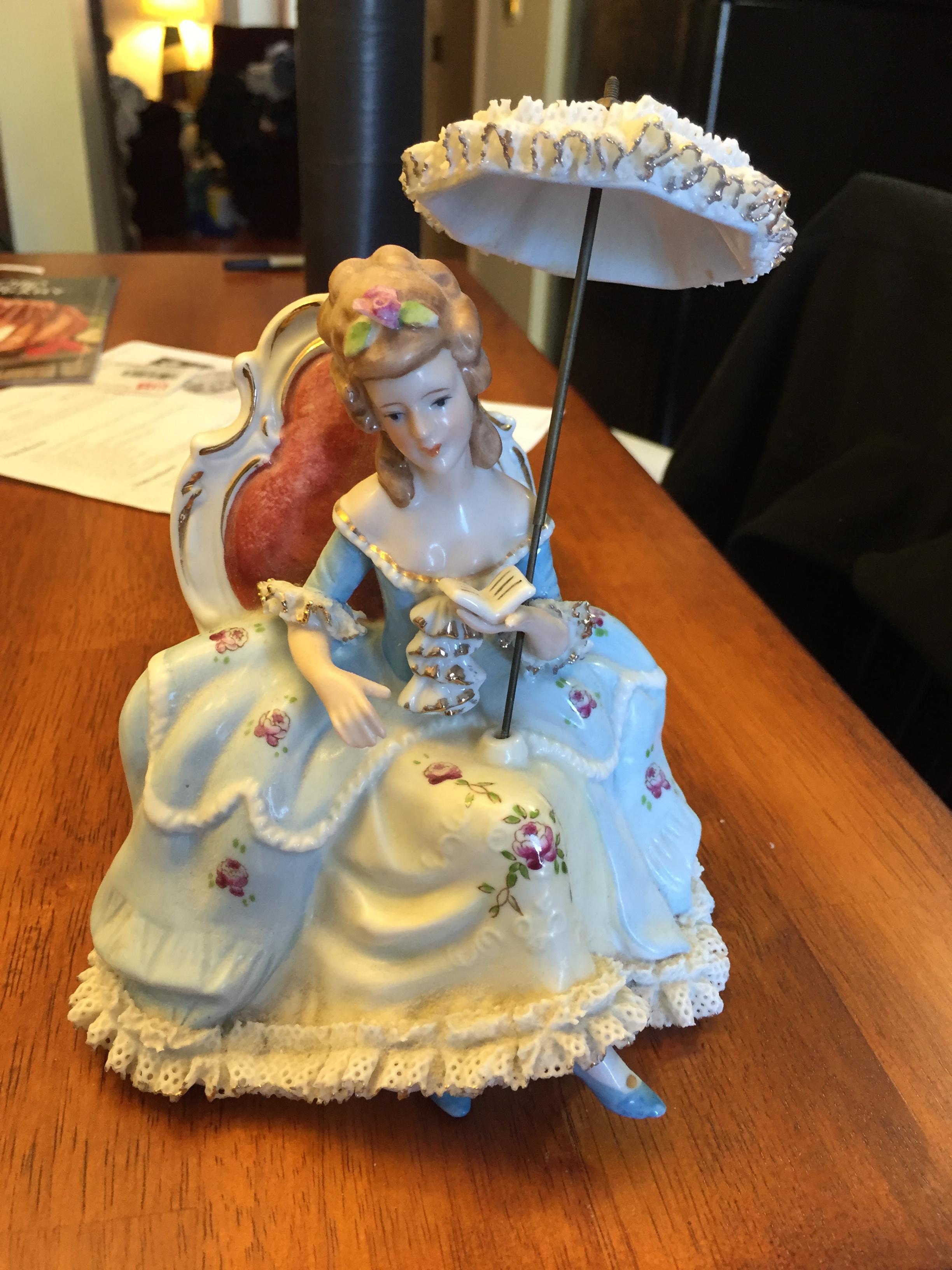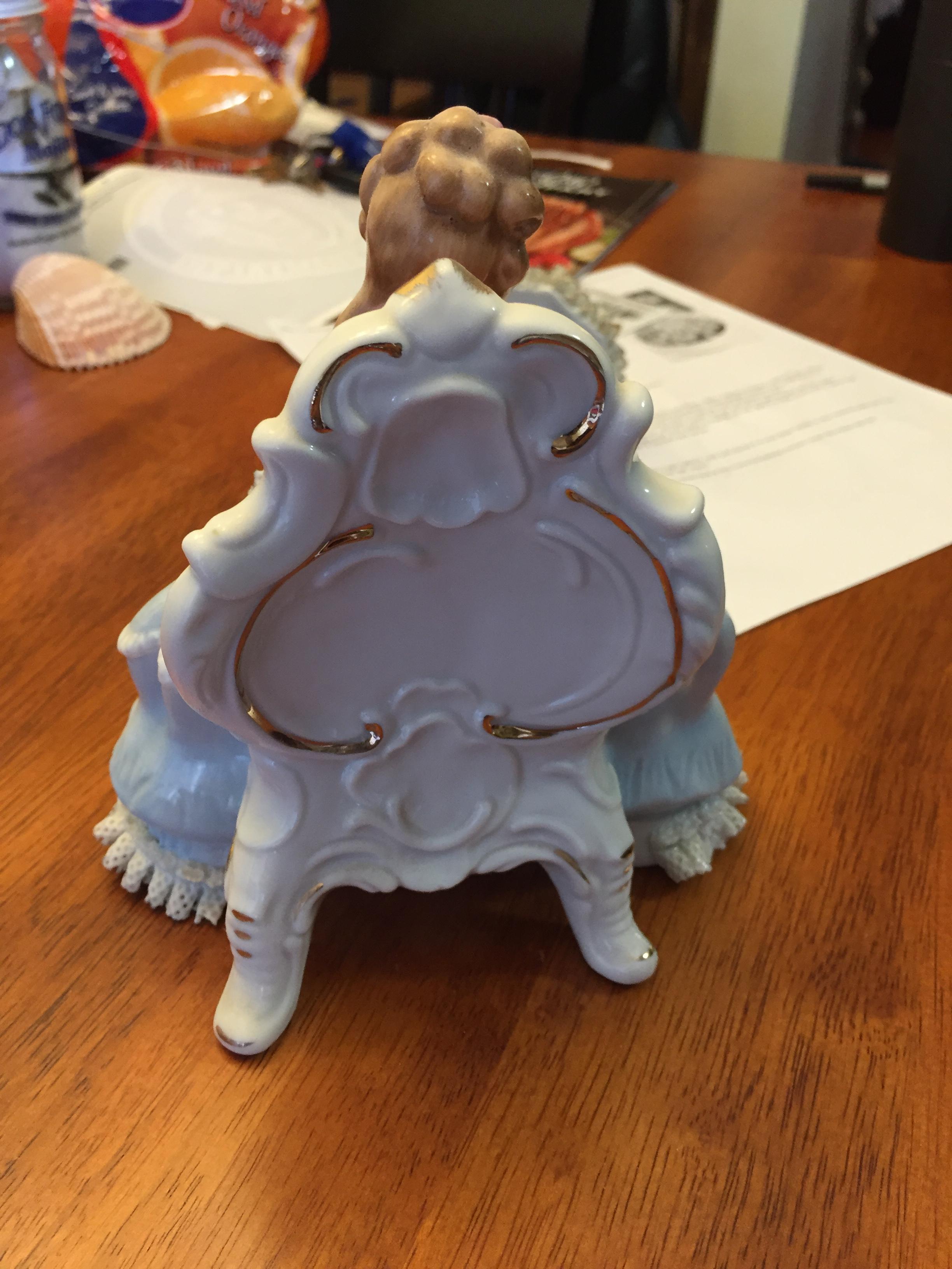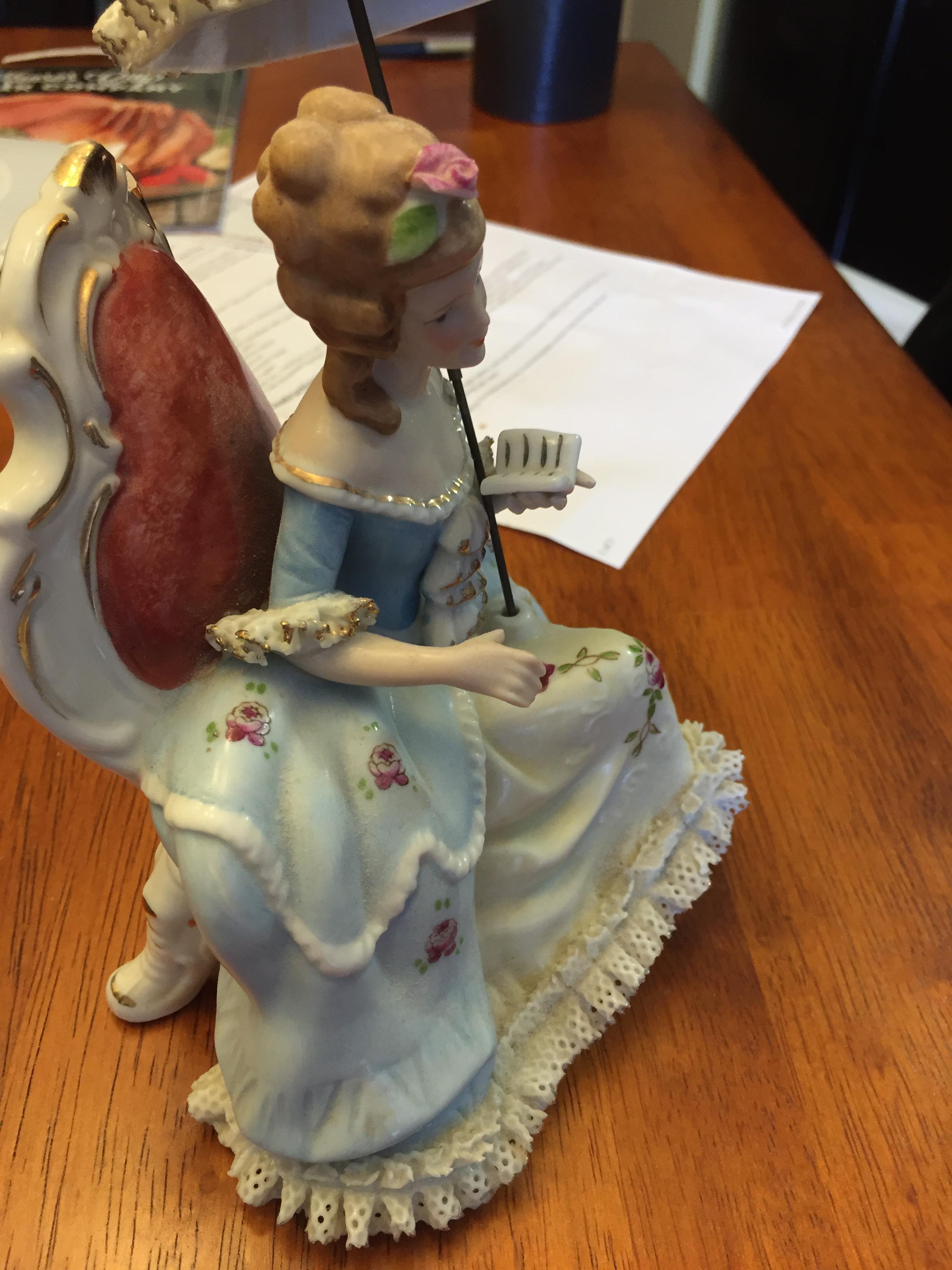 Nice porcelain piece, l call it Lady in Reading Chair. not sure what the actual title is.. it is stamped KPM with a crown on the bottom.. in very very nice condition