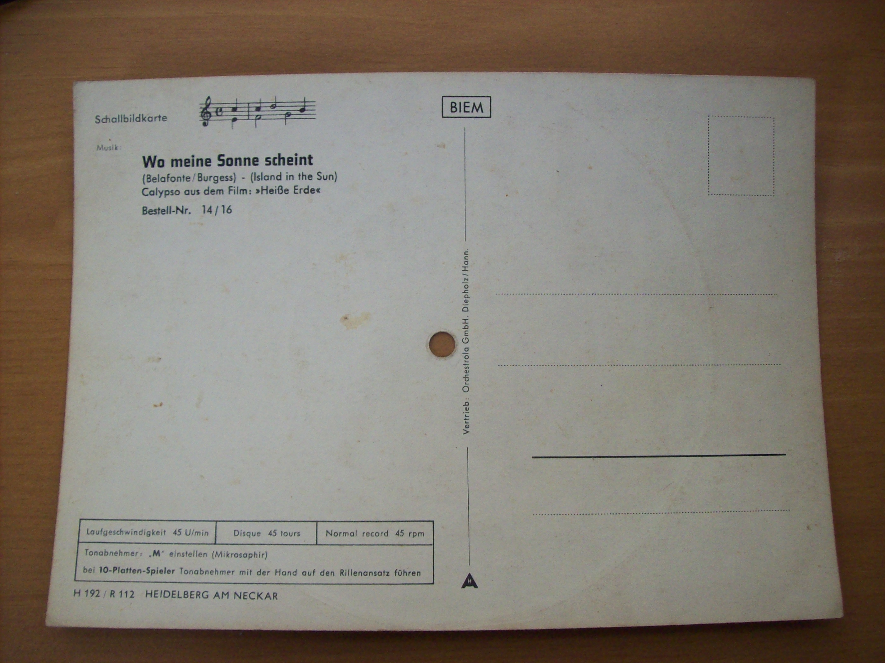 I bought a whole box of vinyl record and there were about 10-15 German Lp albums and inside one of them I found 3 German Phonocards stuffed inside. Not sure about the dates of these but looking at the vehicles in one of the pictures it looks as if they were made in the 1950's. Each one says Schallbildkarte on them.
