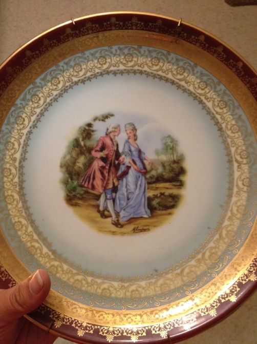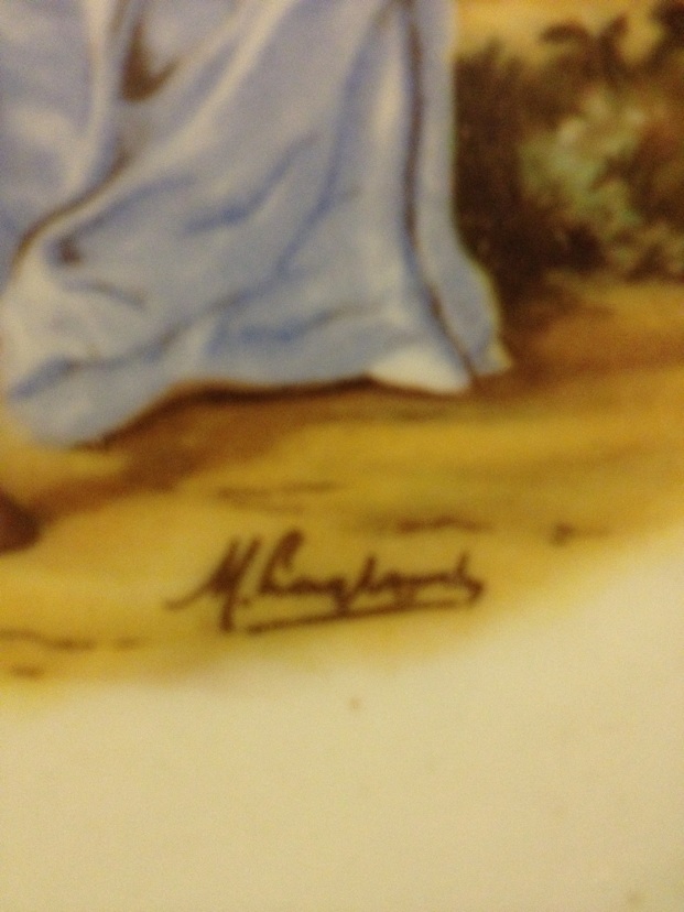 The 1 plate has a signature and 2 clear stamps with a partial stamp on the back. The other has no signature and 3 clear stamps on the back. These two plates are the most unique I've seen in a long time. We have done a lot of internet searching to find anything even close and have come up short everytime. If someone could give us as much detail about these we would be more than grateful. Or if someone can offer an amazing appraiser in the Southern California area that knows their plates, please send me a message. I will only sell these if they are worth an extreme amount as they are 1 of the few anitques I have from our ancestors.