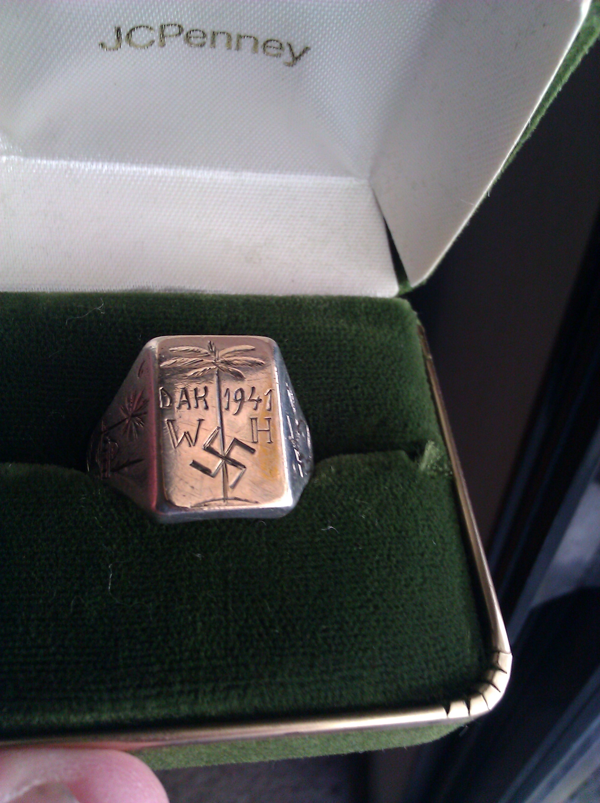 1941 Natzi German ring. Swatzica, DAK, initials WH, camels with tribesmen, palm trees