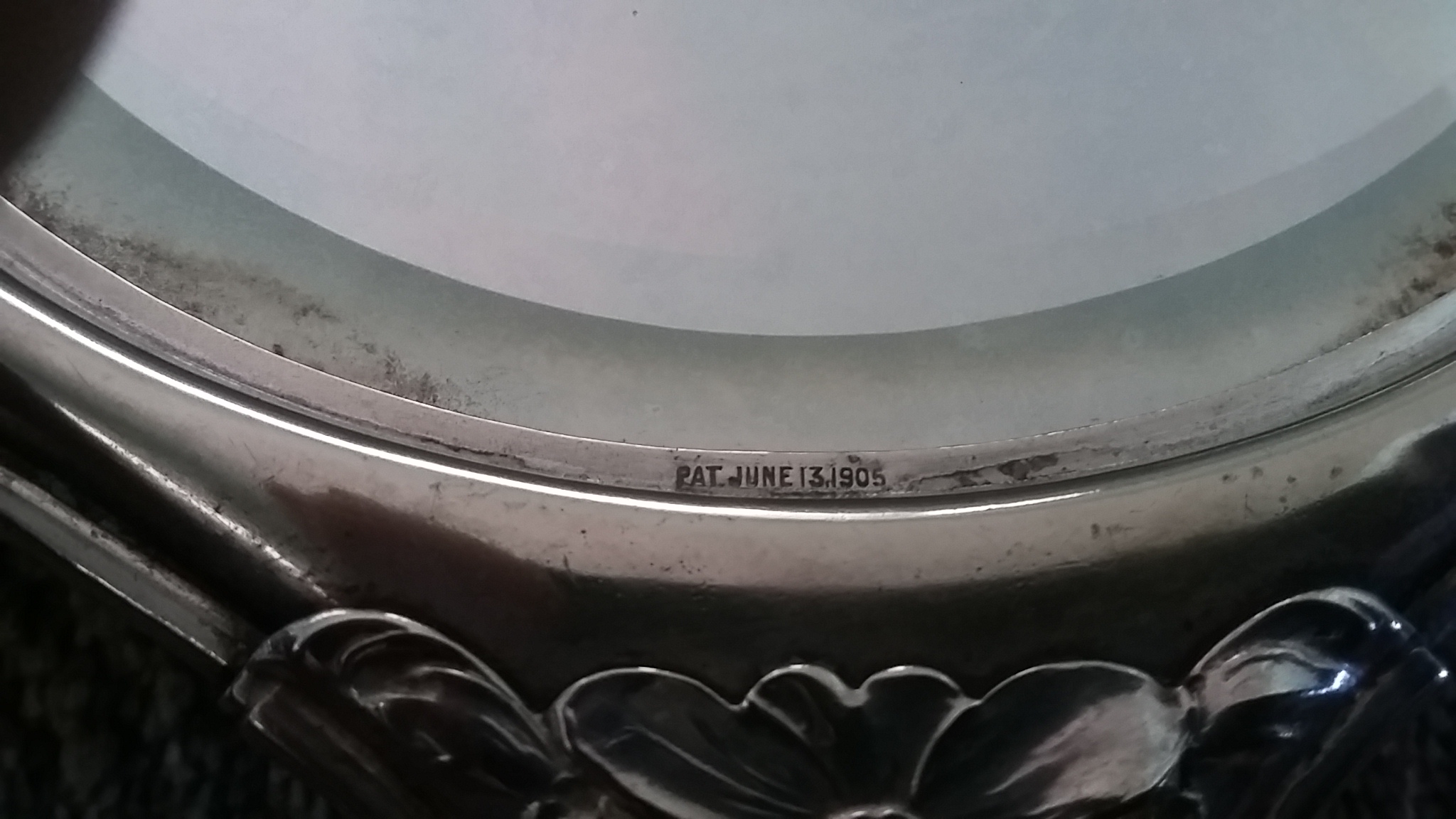 Description It is part of a set but I'm still cleaning the rest I found the pat june 13 1905 on the frame by the glass