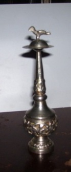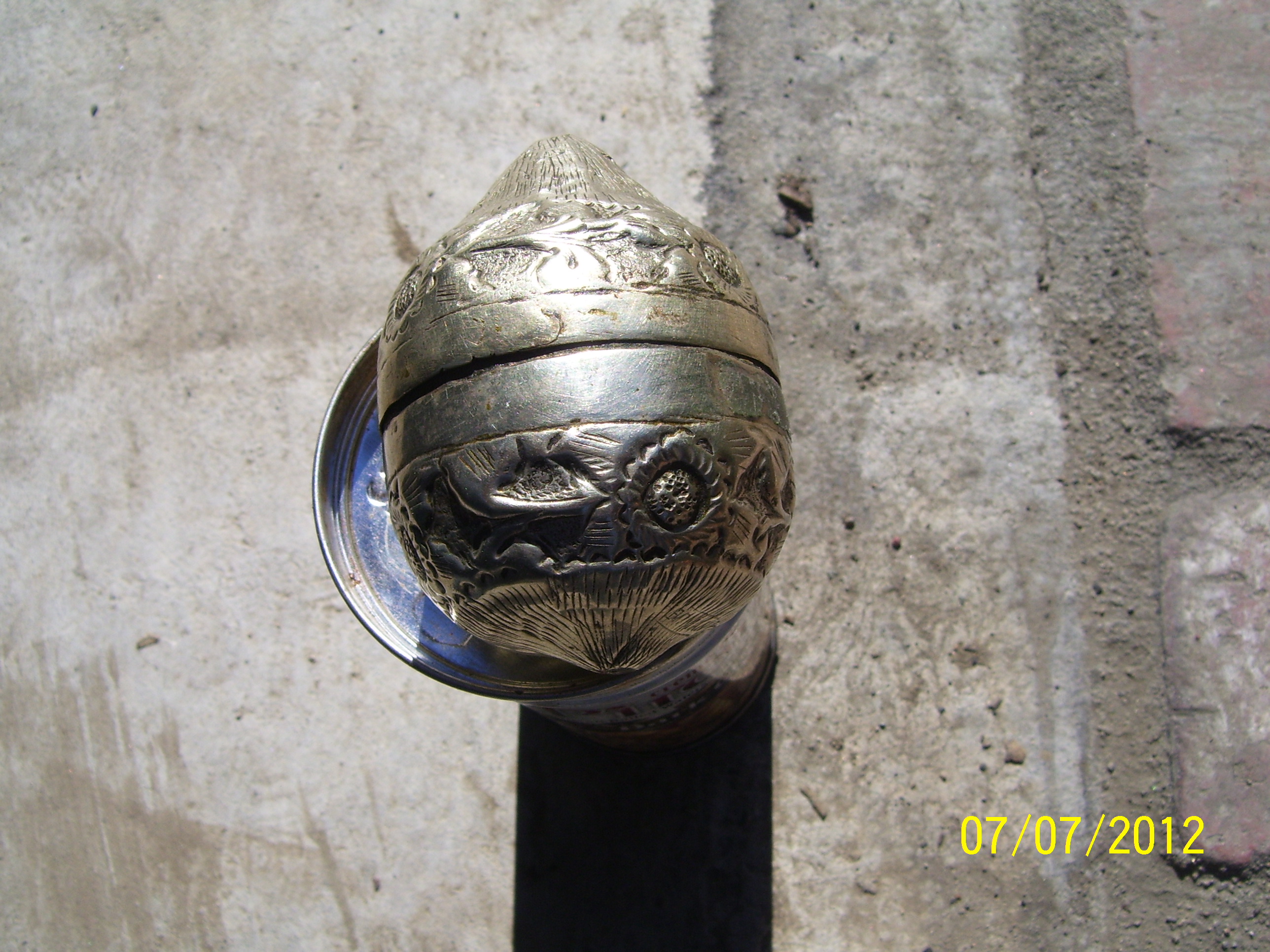As both German silver items were purchased at a yard sale I do not have any history on eithrer. One is tall and has numerous designs. The 2nd is a small egg shaped container that has intricate designs all over it.Both are stamped german silver on the bottom.