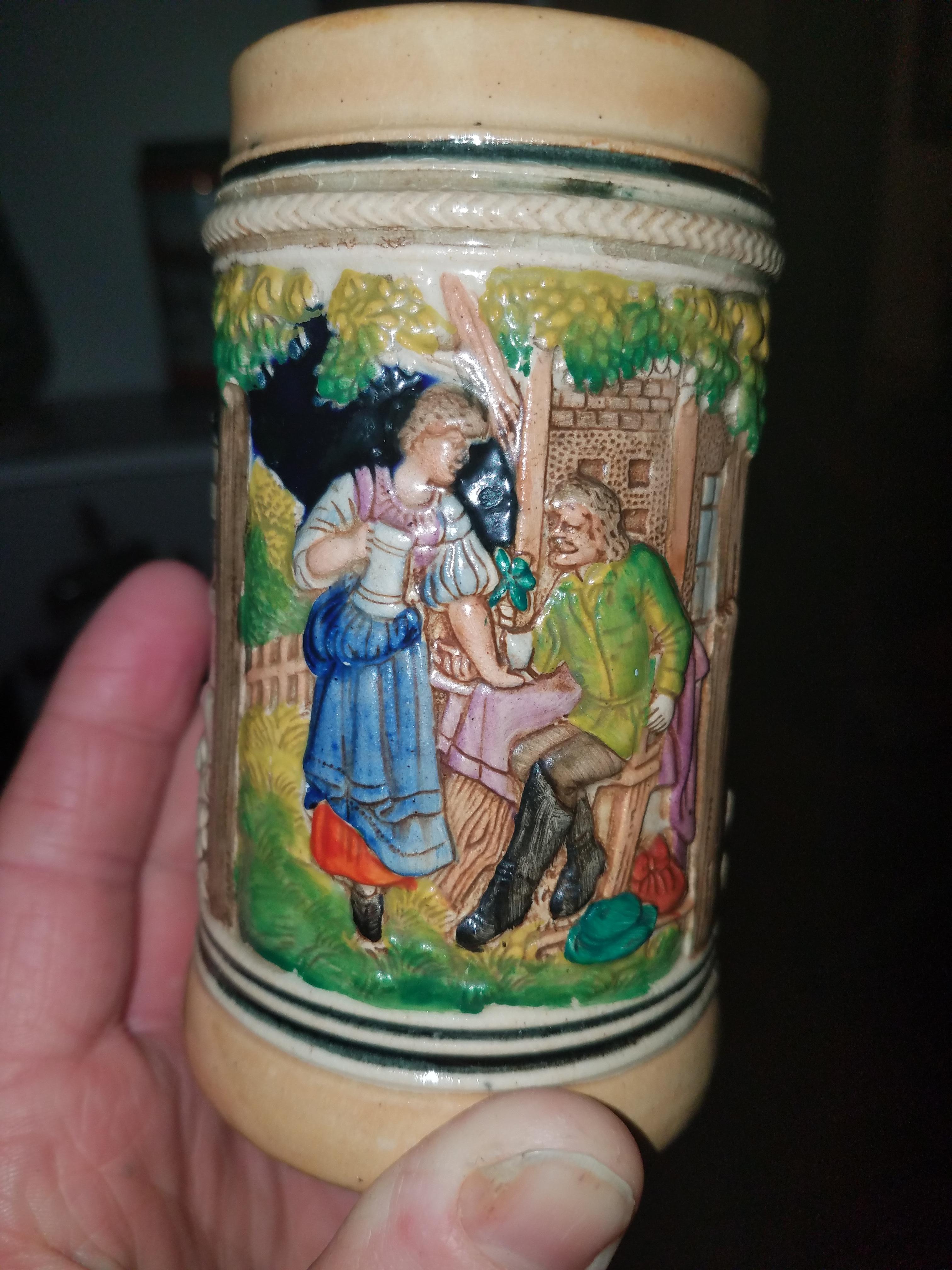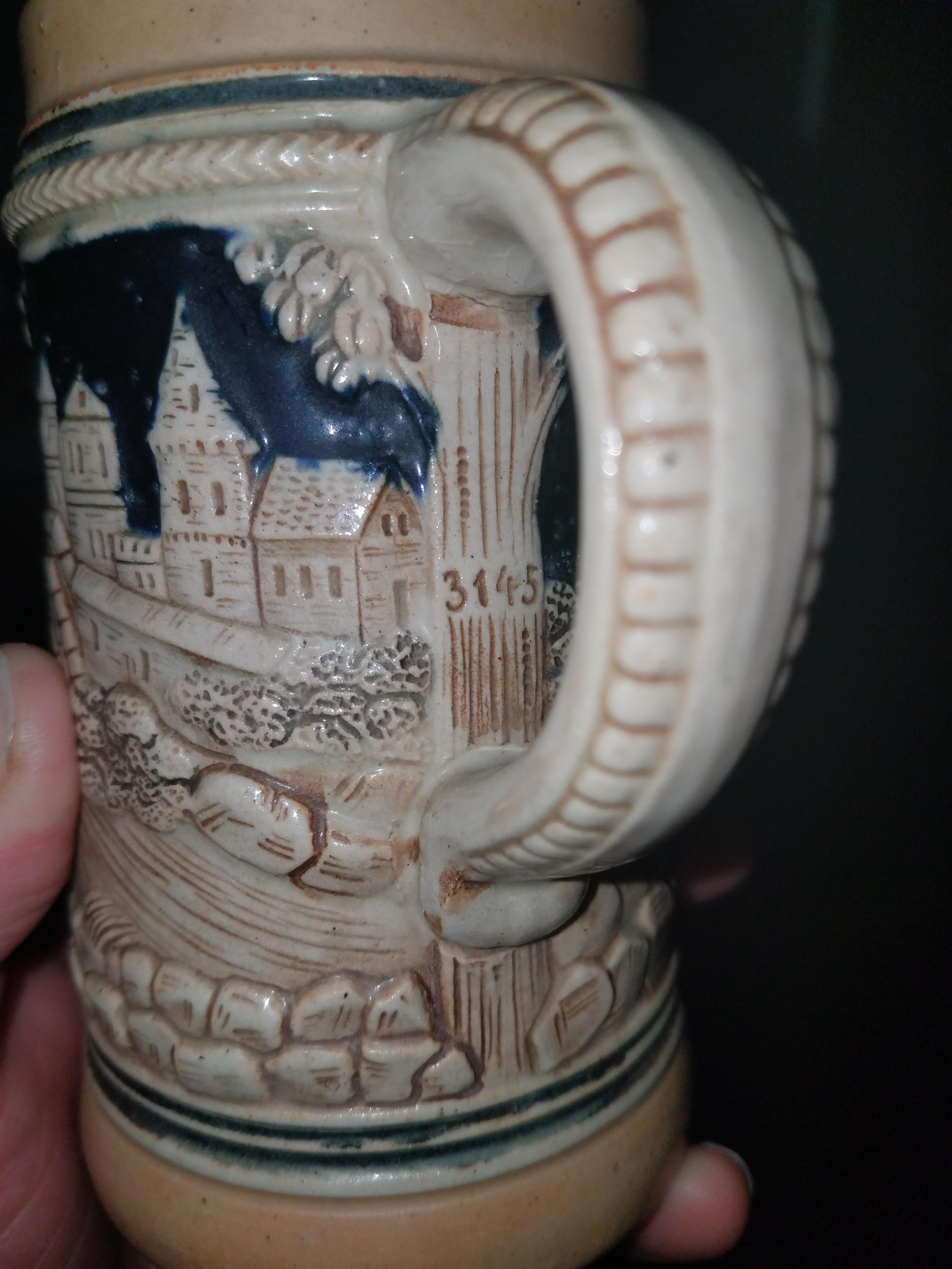 German stein with #3145 under the handle and engraved stein marker.